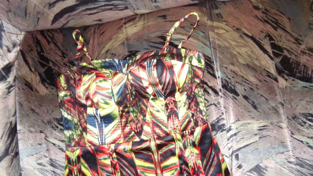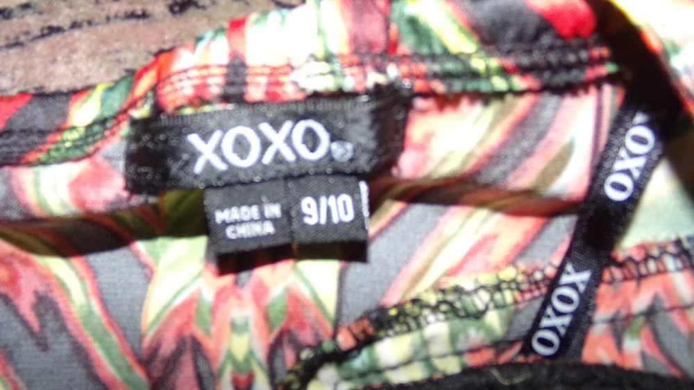 Look fabulous in this XOXO psychedelic print sun dress! The dress is made of polyester and spandex fabrics, with a silky satin texture. The knee-length dress comes in size 9/10 and features a halter neckline with adjustable straps and a zip closure. The sleeveless dress has a built-in bra and comes in a colorful multicolor pattern, making it versatile for any occasion. This dress is perfect for all seasons and can be dressed up or down depending on the occasion. It is not just a dress, but an experience you will love. The XOXO dress is a juniors size, suitable for women who want to look stylish and fashionable. Don't miss out on this dress that was made in China and is perfect for any woman who wants to stand out in a crowd.