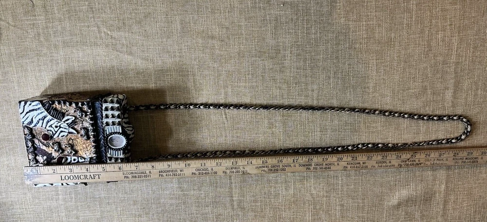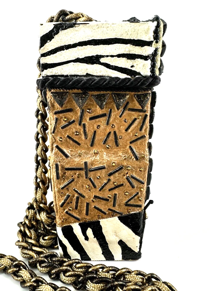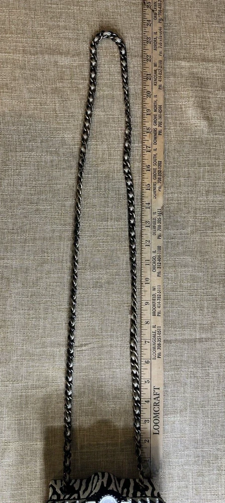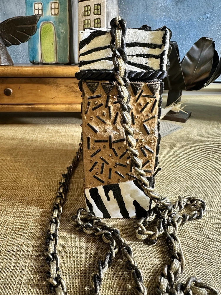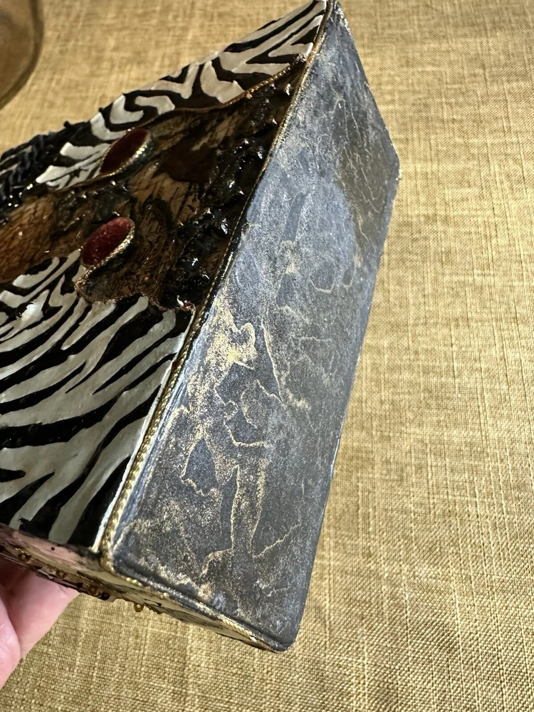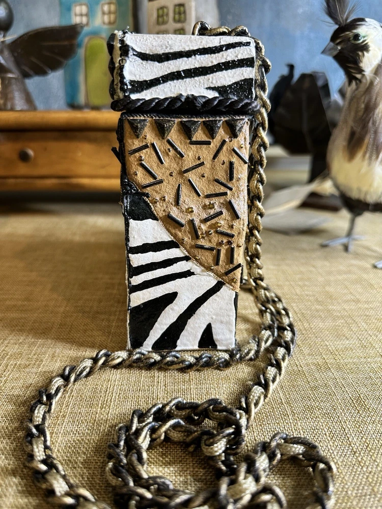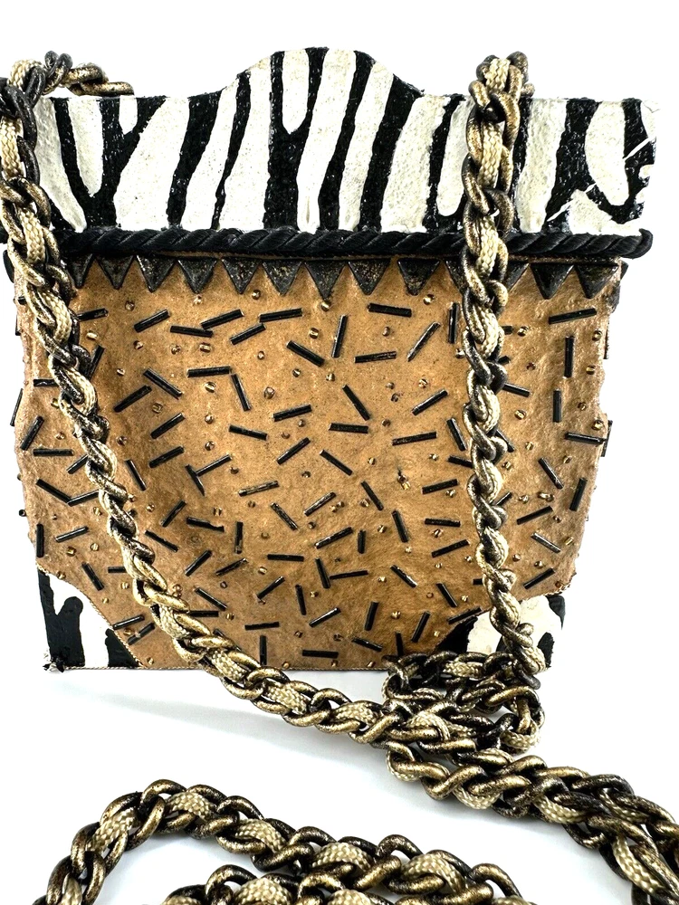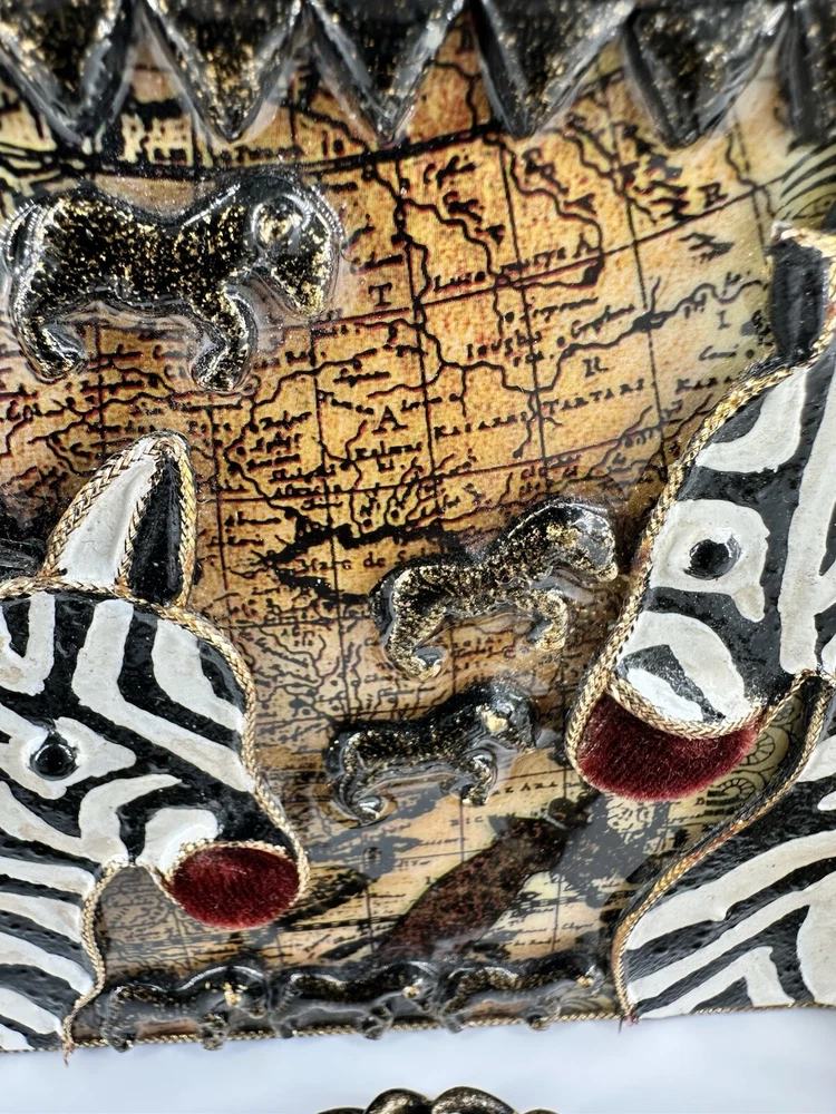 XRARE piece! SEE VIDEO to appreciate the design and beauty of this rare piece. This is a rare and limited edition Mary Frances crossbody purse with a zebra pattern in black and white. Small zebras are in the pattern with a map that is within the tan/brown portion -- very unique and intricate. Jewels throughout. The top lifts open to reveal a small interior lined with black wood. The bag measures 6 inches in height, 3 inches in width, and 6 inches in depth, with a 24 inch metal crossbody strap in black. It is suitable for travel, parties, casual and formal occasions, workwear, and business. The bag features a chain strap, cross-body strap, and is handmade in France. Absolutely a one-of-a-kind! Made in France. This is a vintage piece and is in fantastic vintage condition. Center circle looks as if there may/may not of had an embellishment. Embellishments of beads are gorgeous and very detailed. You have great taste if you have stumbled onto this Xrare piece of Mary Frances. You will receive the Mary Frances purse within the pictures. The other items you may see in the photos are items that will be listed in my Ebay Shop either this week or next week. YouBeYou LLC So, you are getting a sneak peak of what is coming up! :) If you have any questions even after you have purchased the item --- I am here for you to answer any questions that you may have! I strive to work diligently with every buyer to ensure they are a satisfied buyer, so please contact me anytime. This is a pre-owned item and I take great care to accurately describe the item but please see the pictures for full details. While we do our best to list every item in detail, these are vintage and pre-owned items, and some flaws are to be expected. Please see all photos/ video as they are a large part of the description of our items. Items come from a smoke-free environment. Each item is described in accurate detail with multiple measurements and various photos at different angles front and back, side to side, top and bottom. I have additional similar items that I have yet to list that you may be interested in. Feel free to follow my store ( YouBeYou LLC ) to see those when posted. Please see all photos/ video as they are a large part of the description of our items. I strive to make every purchase a pleasant experience. Please feel confidence in you purchase that I'll make every effort to correct any issues that may arise. If used, there are always some signs of wear -- well, because it is used, vintage, or antique. Most items are used -- Each item is inspected for quality. It is very important to us that you have a happy Ebay experience! Thank you for supporting a small business like ours! (Note: pictures may include measurements, and some have a video.)