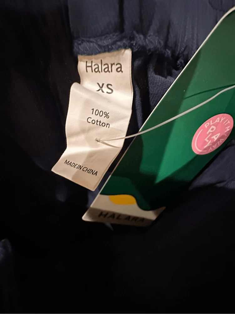 Mid Rise Button Zipper Side Pocket Casual Cotton Joggers in Moonlit Ocean Tag attached Winkles noted Mid waist Back elastic waistband Zipper Two side pockets 100% cotton Fabric does not have any stretch in this style Halara size guide shown in the last image There should be no stains or damage to the garment unless otherwise noted. Original packaging shows signs of handling. Garment may show slight signs of being tried on.