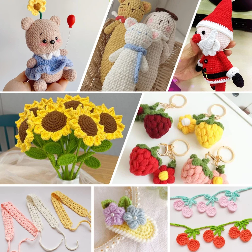 crochet kit,crochet kit for beginners,crochet,crochet hooks,yarn for crocheting,yarn,crochet yarn,crochet set,beginner crochet kit for adults,knitting kit,crochet accessories,crochet hook set,durability/longevity/strength 【Perfect choice】:Introducing the Crochet Kit for Beginners - the perfect choice for adults and kids who want to learn the craft of crochet. This all-inclusive beginner crochet kit includes everything you need to get started, including 12 rolls of yarn(12Roll X 50yard), 12 crochet hooks, a comprehensive "Crochet User Manual" book, and various accessories. 【Video Tutorials Included】:With the easy-to-follow book included and Easy to learn video tutorial with clear instructions and demonstration videos, even if you are a beginner, don't worry. I believe you can easily complete your first weaving project.Tips:the yarn in this set is suitable for 3.5mm or 4mm crochet hooks.For beginners, it is recommended to set slow playback when watching videos to facilitate your learning. 【Complete Crochet Set】:The crochet starter kit include 1crochet craft bag,1 organizer bag,9 crochet hooks with soft grip, 3silver crochet hooks, 12yarn, 10 stitch markers, 6stitch holders,6 plastic sewing needles, 3 cable needles, 1 tape measure, 2 hook point protecters,1 scissors, 1 pom maker, 2 hair clips, 1 bag of dolls fill cotton, 6 dolls eyes, 40 pearls ,2 hair clips, 1 bag of dolls fill cotton, Complete DIY craft crochet accessories and supplies will meet your all crocheting need. 【Includes 2 durable bags】: The crochet storage bag can store all crochets to avoid accidental injury. The unique design of the yarn storage bag allows you to thread yarn out of the hole during your knitting process, preventing entanglement. 【Great Service】:Any time, customer satisfaction is our top priority. If for any reason our crochet kit for beginners adults doesn't fully meet your expectations, simply let us know and we will be happy to support you.We promise: You can return or exchange within six months of purchase.