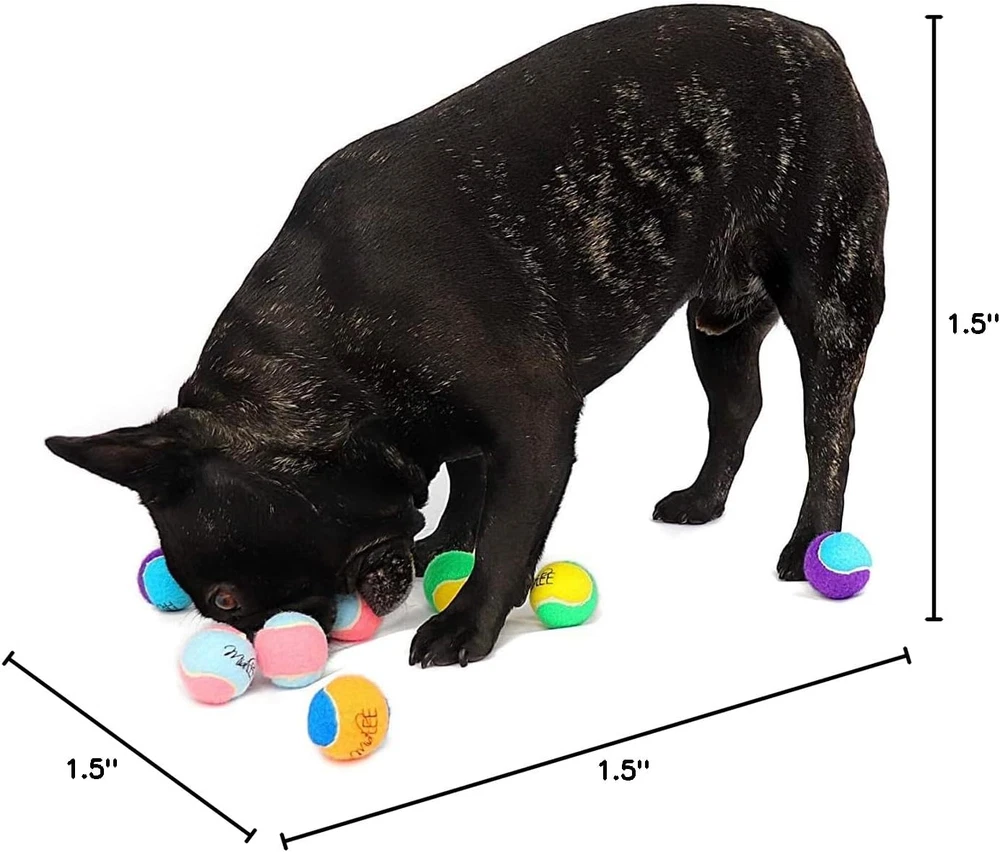 An all-time favorite that's a sure winner with any dog. These tennis balls deliver bounce and roll action and stand up to overtime play like little champs! These extra small/mini tennis balls are perfect for your small breed dog! The little size fits perfectly in your dog's mouth! They are great for a game of fetch and will fit into the most common automatic ball launchers. Soft fabric won't hurt your dog's teeth. Includes 12 dog tennis balls, each 1.5" in diameter. These balls DO NOT have a squeaker inside. Product Description Midlee Designs Unique Pet Supplies We strive to make you and your pet happy! Midlee started because finding large dog apparel for our German Shepherd was basically impossible. We specialize in unique, fun pet supplies that pets & their humans love! Midlee Designs X-Small Dog Tennis Balls 1.5" Pack of 12 (Assorted Colors) An all-time favorite that's a sure winner with any dog. These tennis balls deliver bounce-and-roll action and stand up to overtime play like little champs! These extra small/mini tennis balls are perfect for your small breed dog! The little size fits perfectly in your dog's mouth! They are great for a game of fetch and will fit into the most common automatic ball launchers. Soft fabric won't hurt your dog's teeth. Includes 12 tennis balls, each 1.5" in diameter. These balls do NOT have squeakers Mini tennis balls are perfect for puppies and small dogs. They fit in the tiniest mouths such as Chihuahuas, Yorkies, Pomeranians, Papillons, and more! " data-position="triggerHorizontal"> Our 1.8" small tennis balls are the perfect size for smaller mouths such as pugs, terriers, bulldogs, beagles, and more! " data-position="triggerHorizontal"> Our regular sized tennis balls are perfect for your fetch loving pooch. Breeds include boxers, labs, australian shepherds, border collies, doodles, and more! " data-position="triggerHorizontal"> Our large tennis balls are perfect for those huge fetch loving dogs! Breeds include German Shepherds, St. Bernard, Huskies, Giant Schnauzers and more! " data-position="triggerHorizontal"> Unique Products Looking for a holiday gift for your pet? We specialize in unique holiday-themed products; everything from costumes and sweaters to toys and treats. Size-Inclusive We offer options for X-Small, 9 lb. Chihuahuas and XXXX-Large, 90 lb. German Shepherds. Find adorable apparel that will fit your pet comfortably. High-Quality Toys We work hand in hand with our manufacturers to ensure our products are created with high quality fabric and materials. Safety for Pets With safety our main priority, we offer a variety of items with size-inclusive options, allowing your pet the best fit. Compare Midlee Designs Products Add to Cart Add to Cart Add to Cart Add to Cart Add to Cart Customer Reviews 4.6 out of 5 stars 2,286 4.6 out of 5 stars 2,286 4.1 out of 5 stars 168 4.4 out of 5 stars 171 — Price $16.99 $ 16 . 99 $18.99 $ 18 . 99 $26.99 $ 26 . 99 $19.99 $ 19 . 99 $14.99 $ 14 . 99 The Perfect Gift for Your Dog ✔ ✔ ✔ ✔ ✔ Plush Dog Toy ✘ ✘ ✘ ✔ ✘ Squeaky Dog Toy ✘ ✘ ✘ ✔ ✘ Category Toys Toys Homegoods Toys Apparel Available in Multiple Sizes No No Yes Yes Yes