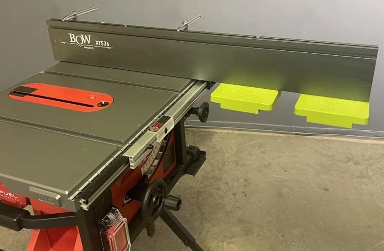 Introducing the XT1 Feed Supports, made for exclusive use with the XT XTENDER Fence System from BOW Products. Never has an add-on fence system added so much value to cutting machines and provided more safety to woodworkers. The Feed Supports attach to the XTENDER and provide an extension to your tabletop on either side. More surface area on the table and along the fence produces greater feed control, stability, precision, and safety with cutting, especially with longer work pieces. The Feed Supports are designed to automatically match the height of our table and have beveled edges to easily accept material fed through the saw. To complete the entire XTENDER Fence system, be sure to include the T-Track Clamps. They are designed to be used with the XT XTENDER Fence but can work with all types of fences. They fit all the way down in the milled slots for a firm grip and no slippage. Once again, innovation from BOW Products adds unprecedented value to professional woodworkers and hobbyists alike. Make sure to check out our other product lines including feather boards, push sticks, hardware, and other woodworking accessories. Use Only With XT XTENDER Fence: XT1 Feed Supports fit into the bottom slot of the XTENDER Fence to provide additional infeed or outfeed support. Extends feed area and improves feed control. Ideal for owners of saws with small table surfaces such as portable saws, benchtop saws, jobsite saws, and bandsaws. XTENDER Fences and XT1 Feed Supports will work on full-size cabinet saws as well. Add Stability and Feed Control: XT1 Feed Supports provide additional Infeed surface and control as material is fed into the saw, and outfeed support once material passes through the cut. Extending your feed area improves stability and control of the board and keeps it square through the cut. This translates to better safer cuts with the precision of a full-size cabinet saw. Versatile Positioning: Depending on the position of the XTENDER Fence in relation to your saw’s fence, the XT1 Feed Supports can be positioned forward for Infeed control, back for Outfeed control, or position a Feed Support on each side of the blade for Infeed and Outfeed control. XT1 Feed Supports have a Cavity under each support to add a vertical support board should additional stability be needed. This is particularly useful for heavier boards. Match Table Surface Height: XT1 Feed Supports match the table surface height. XT1 Feed Supports feature beveled edges to easily accept wood and material fed through the saw. Ordering Considerations: You want to get the 36” or 46” XTENDER Fence along with XT1 Feed Supports and XT2 T-Track Clamps as a complete kit to add extended infeed and outfeed support. 36” or 46” XTENDER Fences will do that for most small table surfaces. See Kit Options Below.