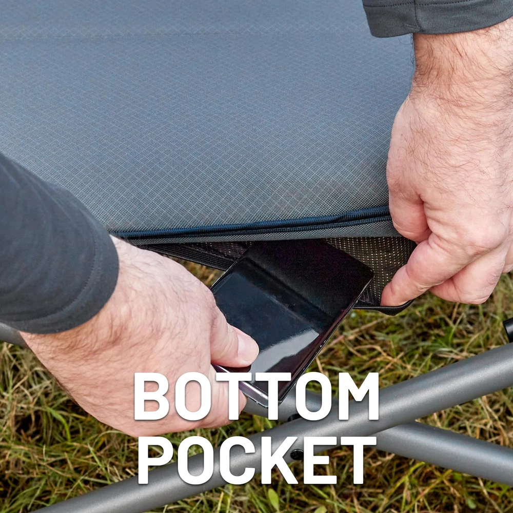 OVERSIZED DIMENSION: Please pay attention to our XXL size. Unfolded size is 32.7"W x 24"D x 36 3/5"H, folded size is 7" X 24 4/5" X 37 2/5"; product weight is 22lbs,this folding oversize camping chair features an extra-wide seat (28.4 inches) STURDY METAL FRAME: This heavy duty director chair can support up to 600lbs and has a 600D polyester embossed fabric and 25mm steel tube frame with powder coating MAXIMUM COMFORT: This comfy directors chair features foam padding full back and wide seat,with padded headrest and cushioned armrest,allows maximum comfort and great relaxation,including long time sitting SIDE TABLE & SIDE POCKET DESIGN: The collapsible side table on the right side keeps important items within reach and is perfect for your cell phone and beverages. Removable side pocket on the left side has a large pocket with insulated coating to help keep food or drinks cold or hot for hours. Mesh pocket under the seat for some other small items MULTIFUNCTIONAL USAGE: This oversized directors chair is suitable for camping, traveling, barbecue, picnic, and any other outdoor / indoor activities BELIEVE US: At , each product is meticulously crafted with care and supported by our dedication to ensuring customer contentment. Should any concerns arise, our assistance is readily available