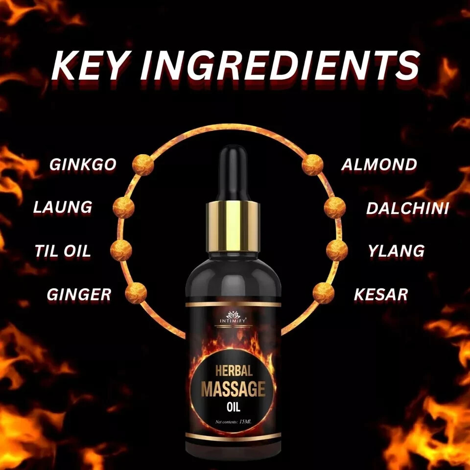 Type: Massage Oil Features: Alcohol-Free, All Natural, Organic Ingredients: Laung, Kesar, Dalchini, Til Oil Formulation: Oil Scent: Herbal UPC: Does not Apply Brand: Intimify Department: Men gtin13: Does not Apply Country/Region of Manufacture: India Size: Regular