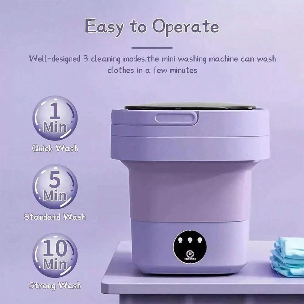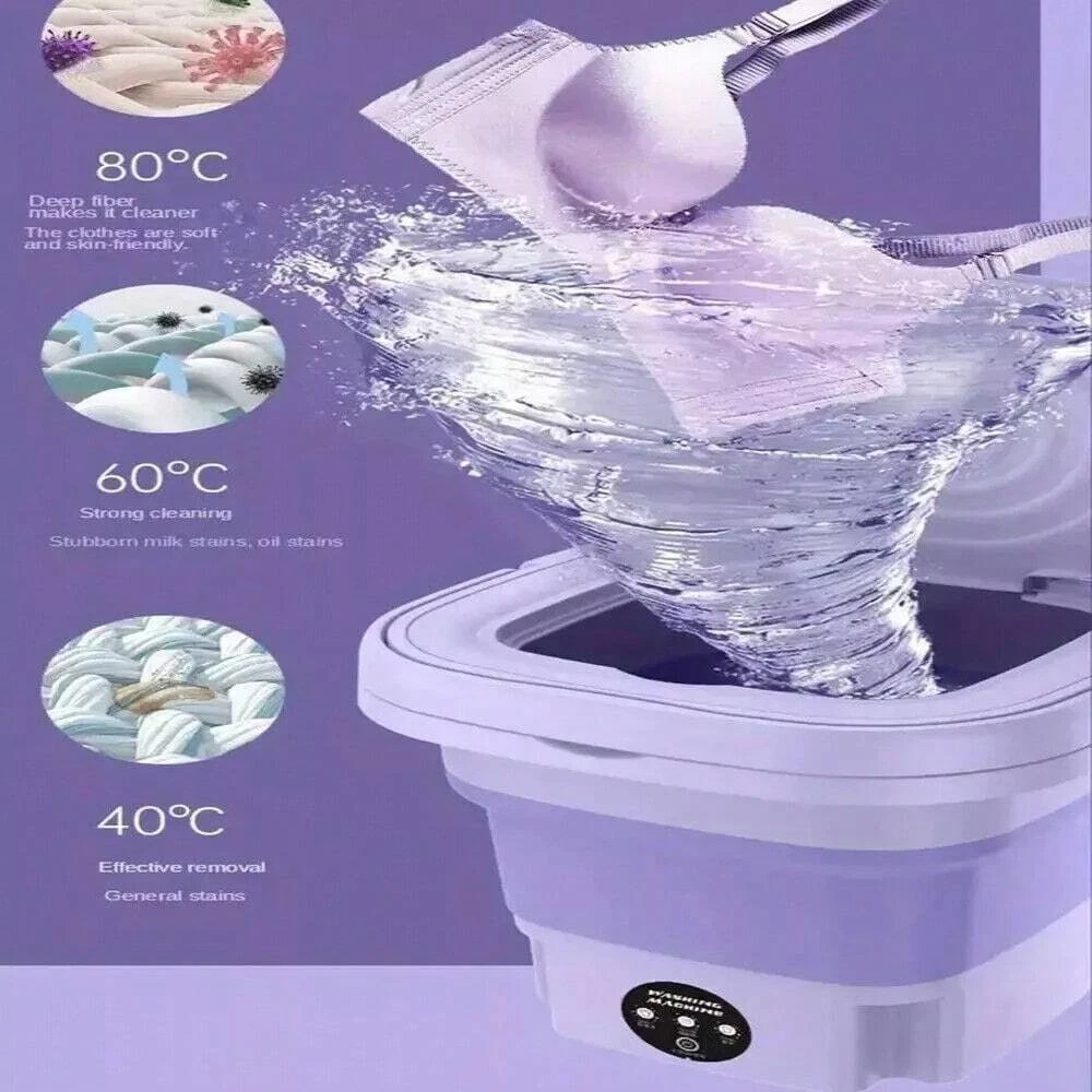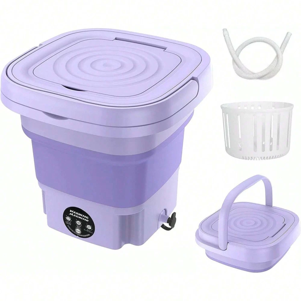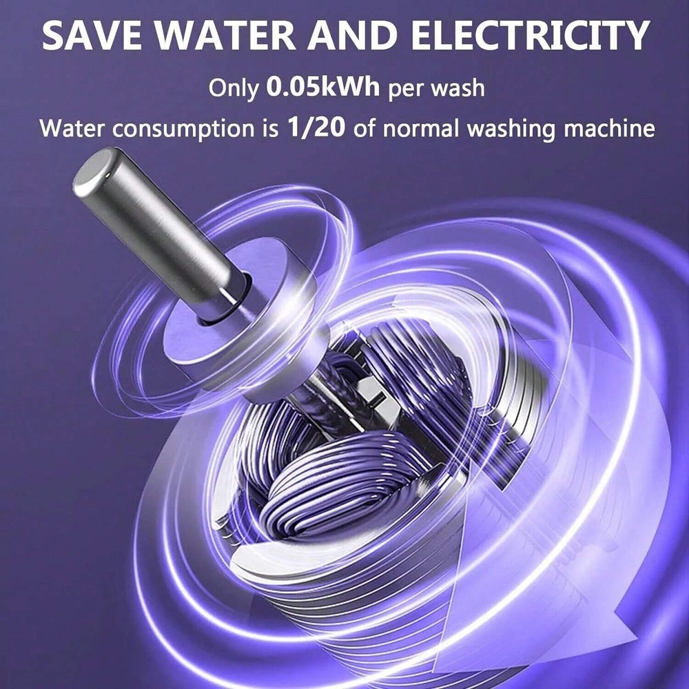 Note: The mini washing machine is specially designed for small items such as baby clothes, underwear, socks, towels, fruits and vegetables, pet supplies, etc. It cannot wash sweaters and large clothes. PLEASE NOTE: This mini washer does not replace a full-size washing machine. Features: 1 [Portable Washer] The portable washing machine provides a drain pipe and a collapsible drain basket, the body only weighs 3.3 pounds, compact and easy to carry, it is an ideal choice for your apartment, dormitory, RV, travel or camping! It is also your ideal gift selection! 2 [Powerful Decontamination] This mini washing machine provides all-round imitation hand scrubbing, precise washing speed to achieve strong decontamination effect. Coming with blue ray, it is very suitable for washing small clothes such as baby clothes, underwear or socks, Stay healthy for you and your family! [Not Recommended]jeans, long skirts, bathrobes and other large clothes. 3 [Folding Design] The small portable washing machine cleverly adopts a foldable design, which measures 11.8 x 11.8 x 11 inches when unfolded and 11.8 x 11.8 x 4.9 inches when folded. Easy to store, fits easily between shelves or under a bed without taking up too much space in your home. 4 [Easy to Operate] The compact simple washing machine has a semi-automatic cleaning function with 3 mode timer buttons for 1 minute, 5 minutes and 10 minutes, and automatically resets when finished, so you can easily complete your various washing requirements. (PS. No need to put in the drainage basket when washing clothes, Fill 2/3 of the washing machine with water for better washing effect). 5 [Safety & Energy Saving] Our portable washing machine adopts the use of TPE and grade silicone material, it is a great choice for your personal items, baby products, patients' families! Only 0.05 kWh of electricity is needed for each laundry. Save time, money, and effort while providing you with a high-quality healthy life! 6 Large Capacity: 40W strong washing power, 8L large capacity design, personal clothes can be washed at any time, and farewell to accumulation. Specification: Washing Machine Type: Mini Washing Machine Energy Efficiency Rating: None Loading Type: Top Loading Power (W): 40w Voltage (V): 110V Washing Capacity (kg): <2kg Opening Method: Top Open Washing Program: Pre-wash,Power Wash,Quick wash,Standard Wash Installation: Portable / Mini Tub Material: Plastic Tub No. : Single Tub Condition: New Type: Compact Drainage Method: Lower Outlet Motor type: Common Motor Model Number: Mini Washing Machine Automatic Type: Automatic Power Source: Electric Housing Material: Plastic Depth: <50 cm Control type: electronic Product size: 30 x 30cm/11.8 x 11.8inch When folded: 30 x 12.5cm/11.8 x 4.9inch Packaging: Boxed Product Material: Plastic Plug specification: US Standard Package List: 1x mini washing machine 1x power plug 1x drain pipe 1x English user manual