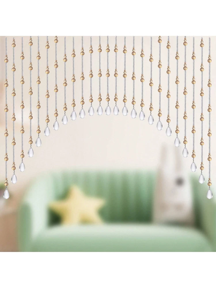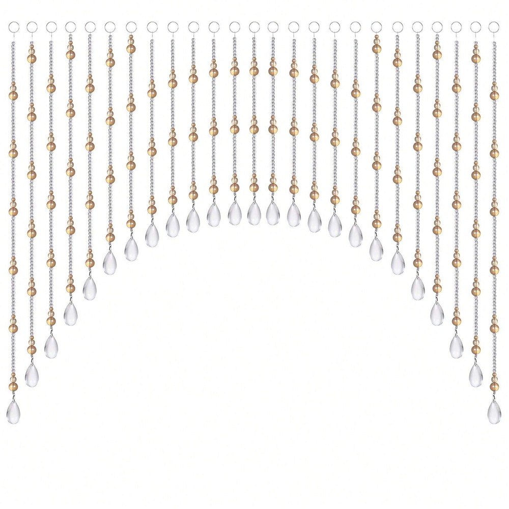 Description Color. AmberChampagne/ClearMateral: GlassProduct Dimensions: 23"L x 40"VW35"L x 8O'"V'VOpacity Sheer About this item[Exquisite & Durable]Crafted from premium kg crystal glass, our doorwaycurtain exudes elegance with its uniform and transparent color, The smoothand delicate texture adds a touch of luxury to any space. The beads areskillfully threaded with stainless steel wire, ensuring durability and longevity.[Elegant Home DecorjThe cryslal door beads are expertly crafted into theshape of gourds, symbolizing good luck, fortune, and prosperity. The archedbeaded valance curtain features 25 beads strings with a length ranging from12"~ 24", and an arched design that adds a touch of elegance to any space[Versatile Use]The crystal curtain is ideal for use as a door frame curtain,window valance or room divider decoration, providing a stylish and functionalway to enhance the look of amy room, lt is also a beauliful and sophisticateddecoration for creating chic B&B, hotel and jewelry stores. Make any spacemore eye-catching.[Universal Size]This 25 string hanging beads curtain can cover 24-40 incheswide space, fis most regular size doors. For a space of 40-80 inches, it isrecommended to buy 40 strings. Buy 2 or more to cover a wider space.[Easy Installation]Our door curtain is designed for easy installation withsufcient nail free hooks, no drilling or nails required. Simply attech the beadstrings to the self-adhesive hooks and hang them wherever you desire, customspecing to your liking.