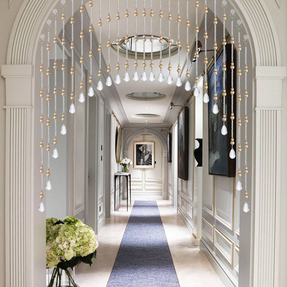 This stunning crystal beaded curtain instantly elevates any doorway or room divider with its luxurious amber-champagne glow. The high-quality glass beads have a beautiful gourd shape that catches the light elegantly, while the sturdy stainless steel threading ensures they'll last. It adds just the right amount of privacy while still letting light filter through beautifully. Perfect for creating a bohemian chic or glamorous atmosphere - absolutely love how it transforms my space!