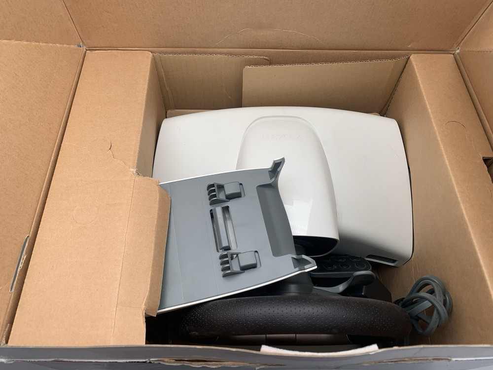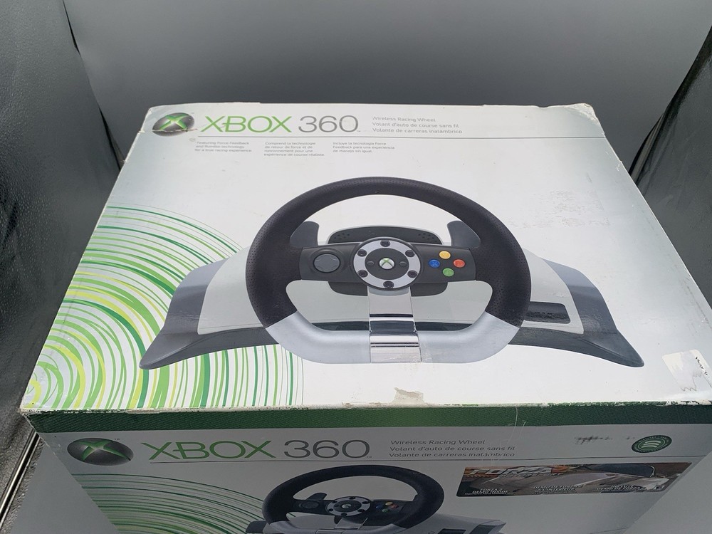 The Microsoft Xbox 360 Wireless Racing Steering Wheel is a white plastic replica of a steering wheel designed for racing games on the Xbox 360 platform. It features a wireless connectivity option for convenience and offers a realistic gaming experience for solo play. This officially licensed product by Microsoft is compatible with various racing games, consoles, and controllers, making it a versatile accessory for enthusiasts of racing simulations No demo disc or manuals