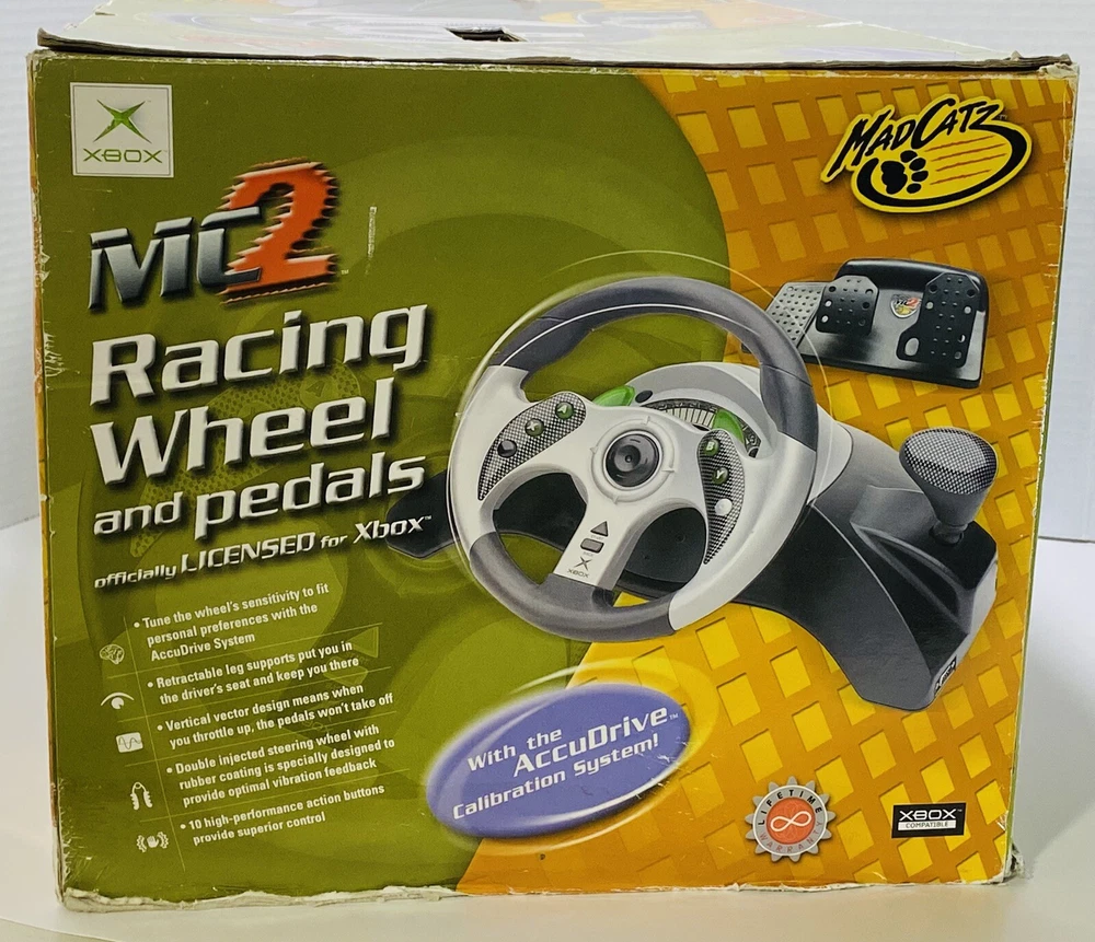 Xbox Mad Catz MC2 Racing Wheel And Pedals Vintage “2001” New In The Box