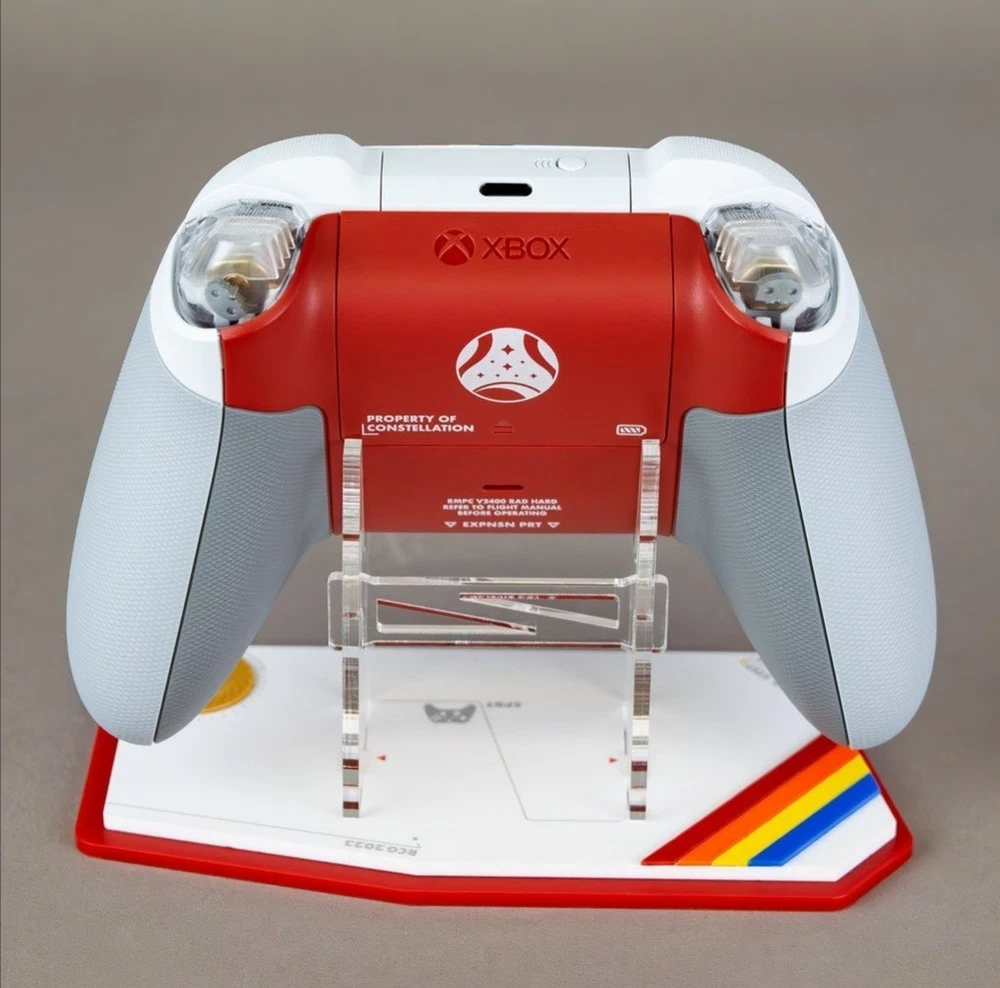 Brand new, never used only opened boxes for display purposes, custom display stands made out of acrylic. Stands are one of a kind and very high quality to match the Starfield theme perfectly. The Xbox Wireless Headset & Controller Set Starfield Edition PLUS custom stands is a premium bundle featuring a Microsoft-branded white headset and controller set designed specifically for the Microsoft Xbox Series X|S platform. The wireless connectivity allows for freedom of movement while gaming, and the custom stands add a stylish touch to the setup. Made with durable plastic materials, this set is compatible with various Microsoft Xbox models and offers a high-quality gaming experience for solo players. Ideal for fans of the gaming platform looking to enhance their gaming setup with a sleek and modern design.