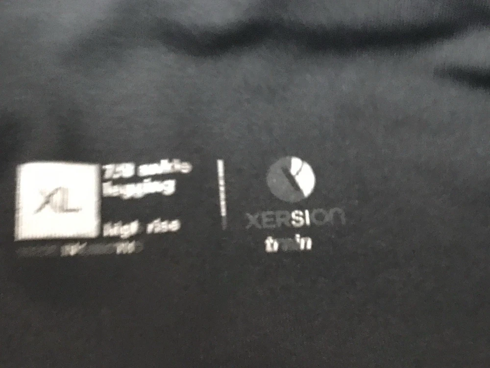Theme: N/A Color: Black Waist Size: See photos Seller Notes: “Very good condition!” Pattern: Solid Size: XL Accents: Diagonal strips on lower legs Season: Fall, Spring, Summer, Winter Character: N/A Occasion: Activewear, Business, Casual, Party/Cocktail Fabric Wash: Dark Department: Women Rise: High (Greater than 10.5 in) Vintage: No Handmade: No Fabric Type: Blended Fabric Brand: Xersion Size Type: Regular Garment Care: Machine Washable MPN: Unknown Features: Comfort, Elastic Waist, Footless, Lightweight, Pockets, Stretch, Unlined Inseam: See photos Bottoms Size (Women's): XL Performance/Activity: FASHION, ANY Type: Leggings Material: POLYESTER/SPANDEX Style: Ankle California Prop 65 Warning: N/A