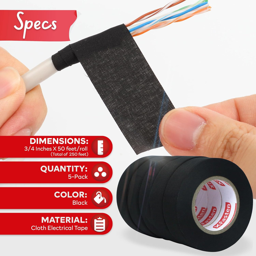 Xfasten 3/4-Inch x 50-Foot High Temp Wire Harness Tape 5-Pack for Wiring Loom