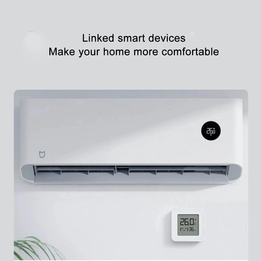 5/4/3/2 pcs Xiaomi Mijia Thermometer 2 Bluetooth-compatible Smart Remote Control Temperature Humidity Sensor with LCD Screen Digital Features -1- Home hygrometer, data can be clearly read in various brightness and angle. -2- High sensitivity and accurate sensirion from Switzerland, sense subtle change of temperature and humidity a breath away. -3- An expression to spell over comfort level, cute and simple. -4- Low consumption screen, a CR2032 button battery for one-year. -5- Built-in advanced Sensirion temperature and humidity sensor, temperature accuracy: 0.1 degrees, humidity accuracy: 0.1 percent RH -6- Via Mi app to switch on humidifier when indoor humidity is too low and air-conditioner when indoors temperature is too high LED digital display, you can get temperature, humidity easily Package included 1 x Xiaomi Mijia Thermometer Hygrometer 2 1 x Wall Sticker 1 x Use Manual(Chinese) Brand XIAOMI Mijia Model LYWSD03MMC CMIT ID 2019DP8115 Material ABS+PMMA Voltage DC2.5V- -3V Battery CR2032(include) Wireless Connection Bluetooth-compatible 4.2 BLE Measure range 0°C-60°C Temperature display resolution 0.1°C Humidity range 0%一99%RH Humidity display resolution 1 %RH Executive standard QB/WSDJ 2401-2019 Size 43 x 43 x 12.5mm Quantity 1 Pc Sudden changes can cause you to have a dry mouth, a cold, a fever, allergies and discomfort. Thermo-hygrometer can sense temperature and humidity changes in your life Can be placed on desks, bedside tables, offices; can also be attached to the wall using the attached wall sticker Thermo-hygrometer , and can be hung from cars, backpacks, doors, etc. through the hanging holes on the side of the fuselage Can be set in advance in the Mijia application, automatically turning on or off associated devices when a certain temperature is reached Design patterns for babies. When the temperature or humidity exceeds the comfort of the baby, the Mijia APP will automatically remind and provide you with coping suggestions, hoping to give you and your family a smarter guardian. Open Mijia APP, add Mijia Bluetooth-compatible temperature and humidity meter 2, and view the temperature and humidity change curve in real time. Data on temperature and humidity changes will be stored in the thermometer body and the cloud. * Mjia temperature and humidity can store 3 months of data, temperature and humidity data changes. Xiaomi weather station