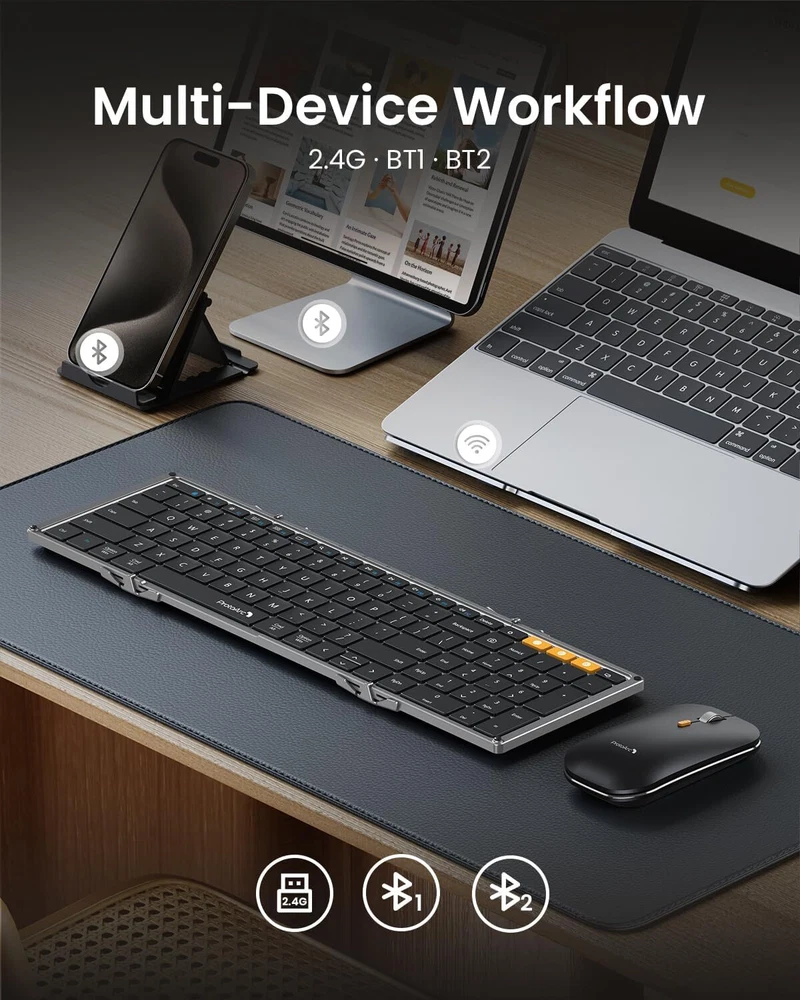 Product Description Foldable Keyboard And Mouse, Xkm01 Folding Bluetooth Keyboard Mouse Combo For Business And Travel, 2.4G+Dual Bluetooth Full-Size Portable Keyboard For Laptop Ipads Tablets - Space Gray 【Full-Size And Quick Access】A Compact Full-Size Keyboard With 105 Keys Is Equipped With 12 Convenient Shortcuts And A Number Pad For Effortless Data Entry And Navigation. The Optimized Key Layout Ensures Seamless Compatibility With Both Windows And Mac Os Computers, Allowing You To Adapt To This Portable Keyboard Mouse Quickly And Start Working Wherever You Are 【Multi-Device Keyboard Mouse Combo】Xkm01 Foldable Wireless Keyboard And Mouse Set Offers Seamless Connectivity For Up To 3 Devices (2.4G+Bt+Bt), You Can Use Your Laptop, Tablet, And Phone Simultaneously. Easy Switch With A Simple Press Of A Button. This Versatile Set Is Compatible With A Variety Of Operating Systems Including Windows, Macos, Chrome Os, Ipados, Android, And More 【Ideal Present】Xkm01 Combo Includes A Hard Carrying Case(Size: 12 X 5.55 X 1.6 In) Will Protect The Keyboard And Mouse Kit While Not Taking Up Excessive Space In Your Backpack. Also Has A Collapsible Stand Holds All 4-11" Ipads, Iphones, And Tablets. It Becomes An Ideal Present Choice For Business Partners, Colleagues, Friends Or Families,Which Offer A Mobile Workspace That Travels With Them 【Quiet Typing And Click】Experience An Ultra-Quiet Working Environment With Our Foldable Bluetooth Keyboard Featuring Quiet Scissor Switches And Low-Profile Keys, Paired With A Noise-Reduced Mouse. The Mouse Offers 3 Adjustable Dpi Levels (1000-1600-2400) To Cater To Your Individual Needs, Providing Smooth, Precise Clicking And Pointing On Most Surfaces 【Rechargeable & Power Saving】Bulit-In Rechargeable Battery, Both The Bluetooth Keyboard And Mouse Can Recharged Via The Included Type-C Cable, Providing Convenient Power Charging. Additionally, An Auto-Sleep Feature Conserves Battery When Not In Use, Allowing For An Impressive 150 Days Of Keyboard Standby Time And 200 Days Of Mouse Standby Time. About Us We are a reputable seller with many years of experience selling on eBay. Our goal is to provide high-quality products and excellent customer service. Shipping Items will be shipped within 1-3 business days when we received payment. (Orders are not processed on weekends & holidays) Tracking information will be sent once item is shipped. Delivery time depends on destination and other factors Item is shipped to ebay address. Leaving correct address can minimize delay. For international shipping and shipping to Guam, Hawaii and Alaska, Please contact us before placing the order. International buyers please note: Import duties, taxes and charges are not included in the item price or shipping charges. These charges are buyer’s responsibility. We will try our best to reduce the risk of the custom duties. Local pick-up is unavailable at the moment. Contact Us We reply any email messages within 1 business / working days(off-duty at weekend). If you do not get a response from us, then please check your junk or spam mailbox. Our Business hours: Mon-Fri 9:00-18:00, UTC/GMT +8 hours. Please contact us either by clicking "contact seller" in the "purchase history" section or simply click "ask a question" at the bottom of this page. If you are unsatisfied with our item or service, please contact us before leaving any feedback. We are committed to resolve all issues in a friendly and satisfactory manner.