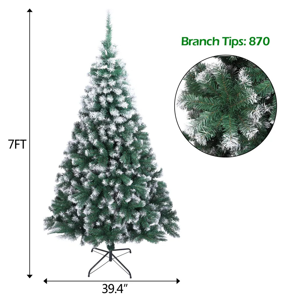 Features: REALISTIC EFFECT--Our artificial christmas tree has natural green foliage with uniform full-bodied color. The tips of the branches are painted white to create a naturally falling snow visual effect. You can make the most of your imagination to decorate the classic snowed christmas tree. Xmas Tree is ideal for decorating window, home, office, shopping market, outdoor and indoor. Added Christmas atmosphere for you and your family ENVIRONMENTALLY FRIENDLY MATERIAL WITHOUT IRRITANT ODOR--Our artificial christmas tree is made of high quality environmentally friendly PVC materials. There is no leaves falling off or any irritant odor problem. SAVE TIME EFFORT--Fir christmas tree branches are divided into bottom part, middle part and top part. Tree Free Shipping Over $49.99* Details Xmas Tree 7 FT Artificial Christmas Tree Product Description: Features: REALISTIC EFFECT--Our artificial christmas tree has natural green foliage with uniform full-bodied color. The tips of the branches are painted white to create a naturally falling snow visual effect. You can make the most of your imagination to decorate the classic snowed christmas tree. Xmas Tree is ideal for decorating window, home, office, shopping market, outdoor and indoor. Added Christmas atmosphere for you and your family ENVIRONMENTALLY FRIENDLY MATERIAL WITHOUT IRRITANT ODOR--Our artificial christmas tree is made of high quality environmentally friendly PVC materials. There is no leaves falling off or any irritant odor problem. SAVE TIME EFFORT--Fir christmas tree branches are divided into bottom part, middle part and top part. Tree branches are tied with string for easy assembly, disassembly and storage. STABLE METAL STAND WITH LONG SERVICE LIFE--Flocked christmas tree metal stand adopts the reinforced iron pipe , and the surface painting process can effectively prevent rust. The four-legged bracket is evenly stressed which increases the stability of the tree and doesn't easily slip down. Bottom rubber cover can effectively prevent scratching the floor in the process of moving small christmas tree SERVICE GUARANTEE--Artificial christmas tree is made of high-quality materials, so it has a long service life and can be reused. If you are not satisfied with your purchase, please directly contact us by email to get after-sales service Specifications: MaterialLeaves are PVC material Product Height7FT (Without Tree Top Branches) Packing Dimensions(46.46 x 5.91 x 6.69)" / (118 x 15 x 17)cm (L x W x H) Product Weight12.13lb / 5.5kg Package Includes: 1 x Christmas Tree 1 x Manual