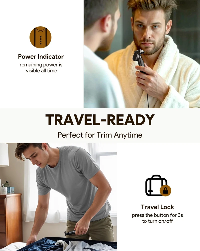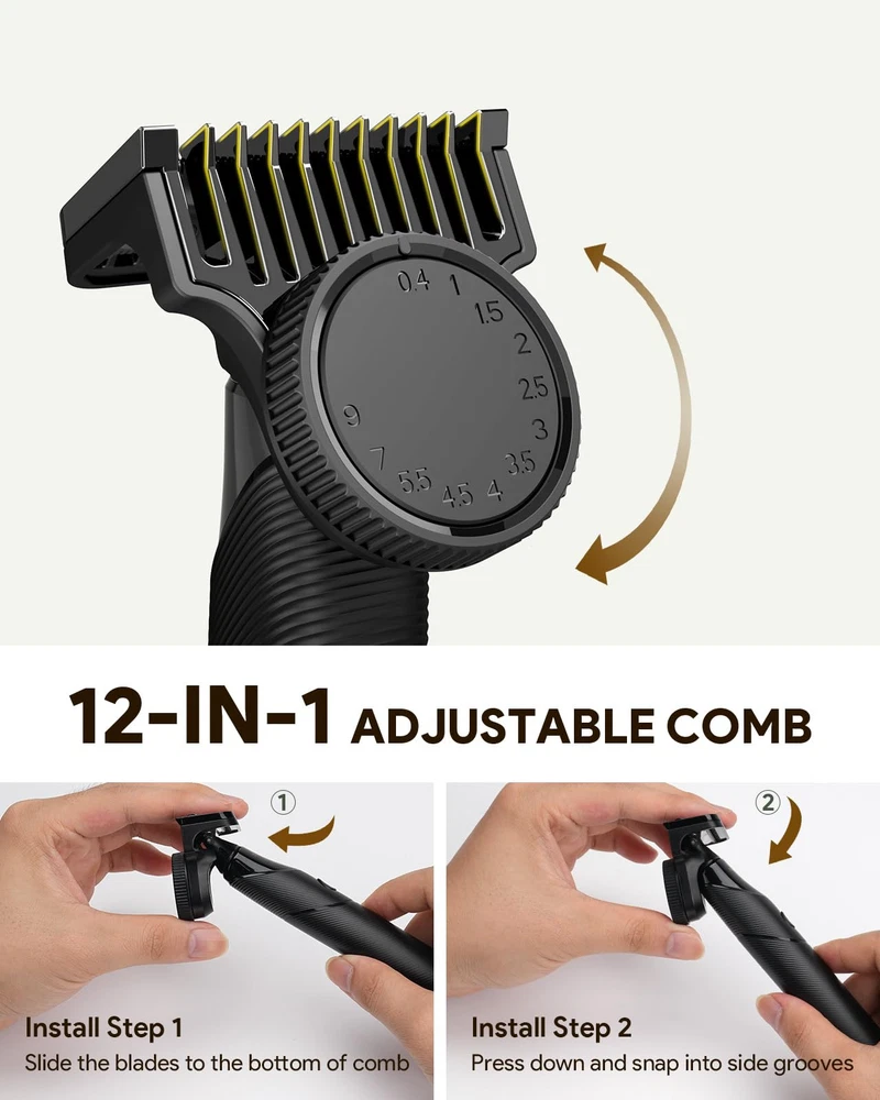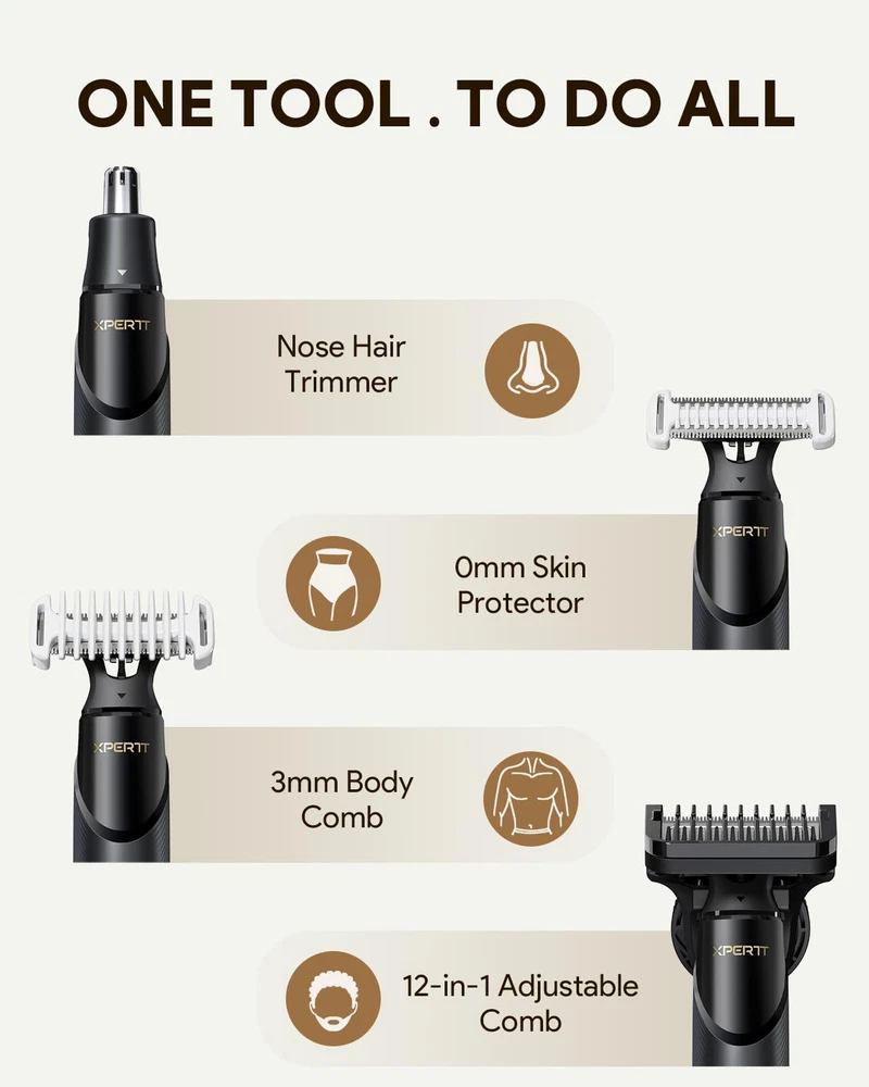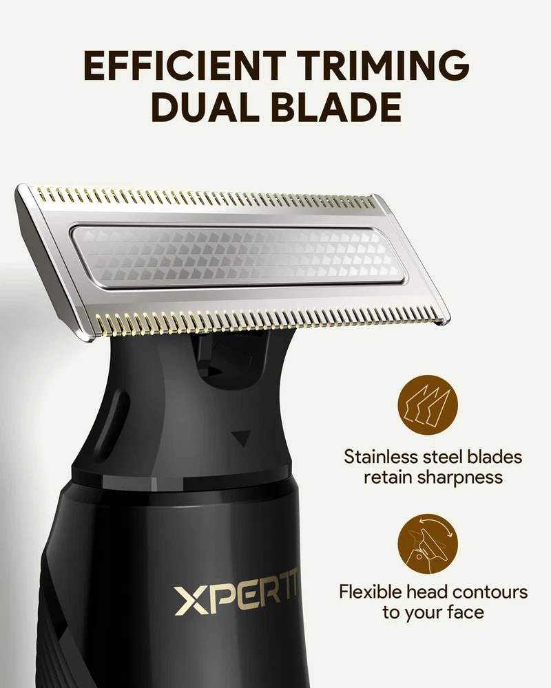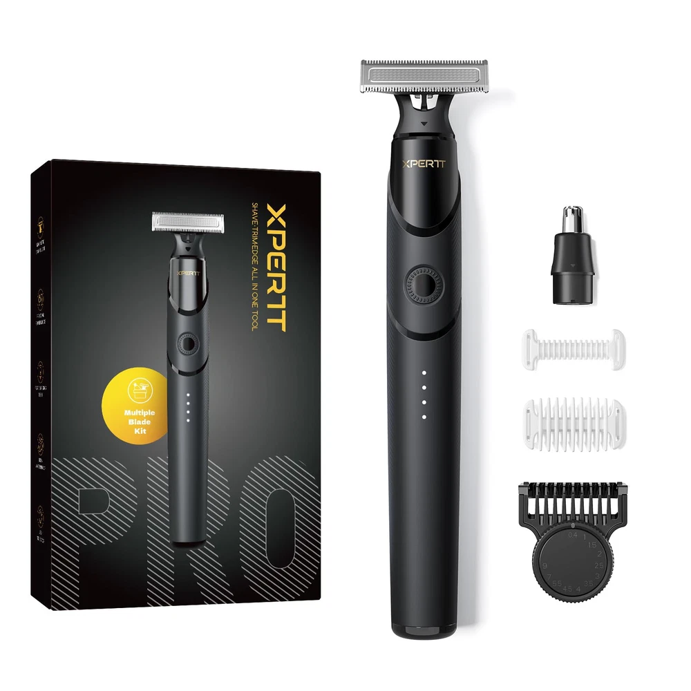 Multi-Purpose Beard Trimmer & Electric Razor: Magnetic replacement head, Easy to assemble, Body Trimmer and shaver, Trim in any direction with the click-on body comb (0.1/3 mm), adjustable guide combs, and skin guard for extra protection of sensitive areas 30-Minute Fast Charge & 90-Minute Long-Lasting Power Electric Shaver: With a Type-C charging cable, this razor charges quickly at home or on the go. Enjoy up to 90 minutes of shaving after a full charge, and use it while charging for uninterrupted grooming. Perfect for daily use and travel The Set Includes: 1x Xpert T Electric Raror, 1x Blade, 1x Nose hair trimmer, 1x 12in1 adjustable comb , 2x body guide coms, 1x protection cap, 1x Type-C charging cable (no power adapter) Dual-Sided Blade: Effortlessly shave in both directions for consistent skin contact and precise control. Trim and shave hard-to-reach areas with fewer strokes, while the ultra-durable blade ensures long-lasting performance Customer Service: If you have any other question about the product, please contact us in any time, we will reply you ASAP