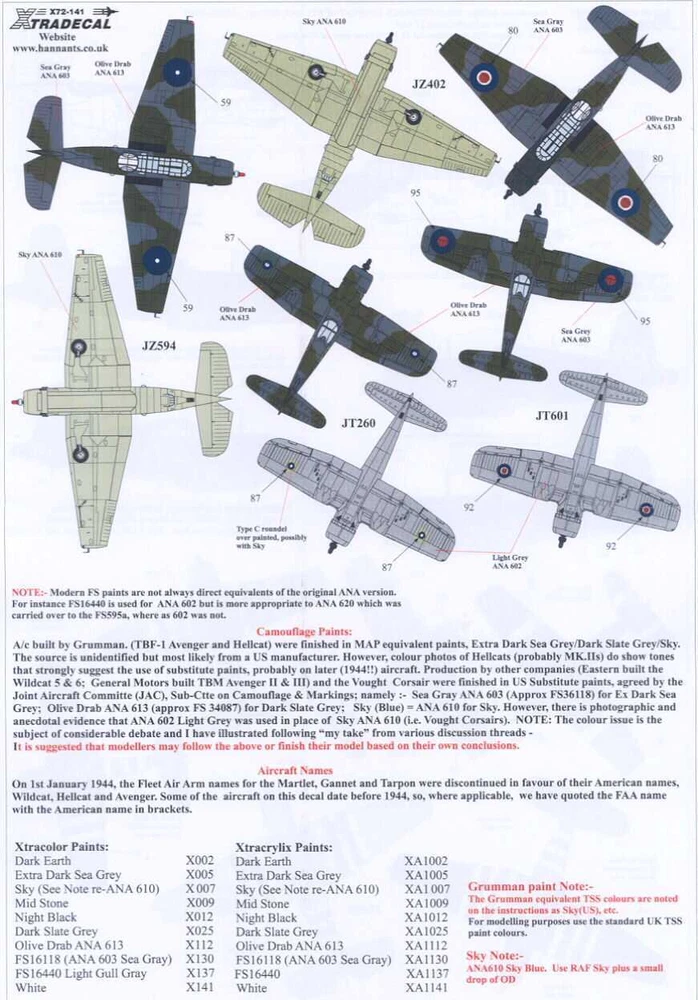Dauntless Hobbies Item: Decal Set - Yanks with Roundels, U.S. Aircraft in Fleet Air Arm Service, Part 2 Company: Xtra Decals Stock Number: 72141 Scale: 1/72 Condition: NEW - MINT IN THE PACKAGE Offered for sale is a set of 1/72-scale for Yanks with Roundels, U.S. Aircraft in Fleet Air Arm Service, made by Xtra Decals This set includes markings for 12 DIFFERENT aircraft, including the Grumman Vought-Sikorsky V-156 Chesapeake (Vindicator), Vought Corsair Mk.II, Grumman Martlett (Wildcat) Mk.III and Mk.V, Grumman Avenger Mk.II, and Grumman Hellcat Mk.I and Mk.II. The set is NEW and MINT IN THE PACKAGE! The set includes a sheet of decals, as shown in the photos plus a full color placement guide. The decals are brand new and in excellent condition. Please note that decals are always shipped packed between two stiff sheets of cardboard to ensure safe delivery. PLEASE E-MAIL ME IF YOU HAVE ANY QUESTIONS, PRIOR TO MAKING YOUR PURCHASE. I WILL GLADLY COMBINE SHIPPING ON MULTIPLE PURCHASES! *PURCHASE TERMS* Please click on the shipping tab in the listing for the correct shipping amount for this item to your city or country. We ship WORLD WIDE to ANY country! California residents will pay California sales tax. INTERNATIONAL BUYERS...PLEASE NOTE! The U.S. Postal Service no longer offers surface mail shipping. All packages must be shipped air mail! *PURCHASE TERMS* I will gladly combine shipping on multiple purchases! I ship World-Wide to any country! California residents will pay California sales tax. INTERNATIONAL BUYERS...PLEASE NOTE! All packages must be shipped air mail! about the seller My ebay selling experience began in 1999 as a result of my long love affair with the hobby and art of plastic models. At ten years old I received my first plastic model, the Monogram Beer Wagon, from my father who owned a well-known toy store during my youth. From there, my enthusiasm led me to become an avid collector and to ultimately open Dauntless Hobbies with the goal of sharing my passion for plastic models. At Dauntless Hobbies, we strive to provide today's modeler with the finest kits and detail accessories at the best price with an emphasis on first rate service. Your total satisfaction is our primary goal, and we strive each and every day to make sure that you find the items you need and that you receive your order in great condition and in a timely manner. Dauntless Hobbies © 2016 Dauntless Hobbies