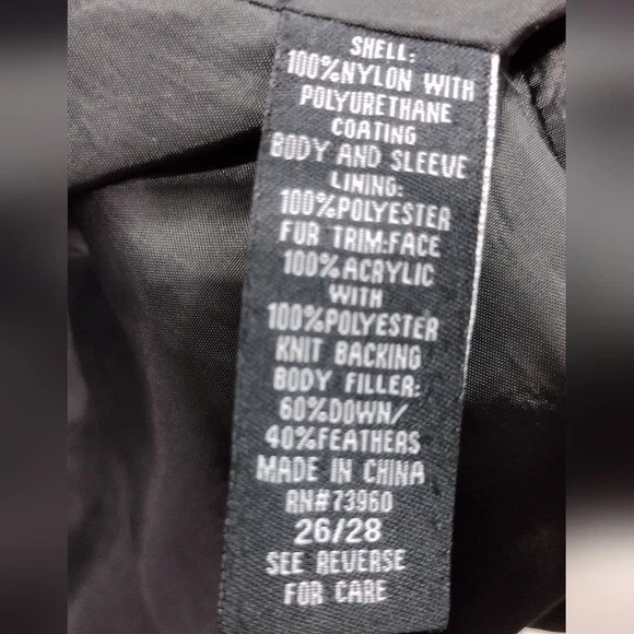 Features Black Zipper closure Pockets Winter Warm Casual Comfy Minimalist Down Feather Filled Great Pre-Loved Condition SIZE 26/28 Measurements Pit to Pit: 28.5" Length: 33" Waist: Rise: Inseam: Length: Please check to be sure of fit Smoke Free Pets Free Please feel free to contact me for any questions or offer Bundle Discounts Offered Fast Shipping *41106-5327-24*
