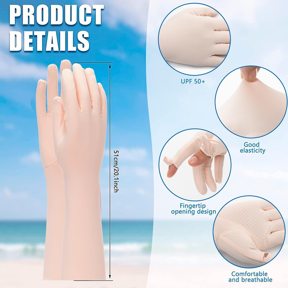 Soft and Comfortable: made of nylon, soft to wear, breathable and stretchy, can protect your hands arms from being sunburned, will serve you for a long time UV Protection Gloves: sun protection gloves can protect your arms from the sun's harmful damage, with good material for better gripping, good touchscreen Size: the summer gloves length of the gloves are about 20.47 inch/ 52 cm, fitting most women's hands; You will feel comfortable to wear and it is not tight Screen Touch Finger: the thumb and index finger of the sunblock gloves are designed with a touch screen design, which is convenient for you to operate your phone with fingers; You can wear gloves to easily operate smartphones, tablets, cellphone or other devices, and you don't have to take off gloves Widely Use: the women long sun protection gloves are proper accessories for driving, cycling, fishing, jogging, going out, golfing, mountaineering, hiking and other spring and summer outdoor activities; You can also use them for indoor activities, including performances, party activities and cosplay