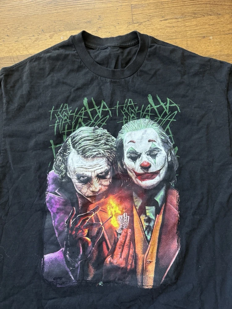 Y2K 00s The Joker Ha Ha Ha Shirt Mens Xl Black Multicolor Batman Vtg Cut Tag Usa