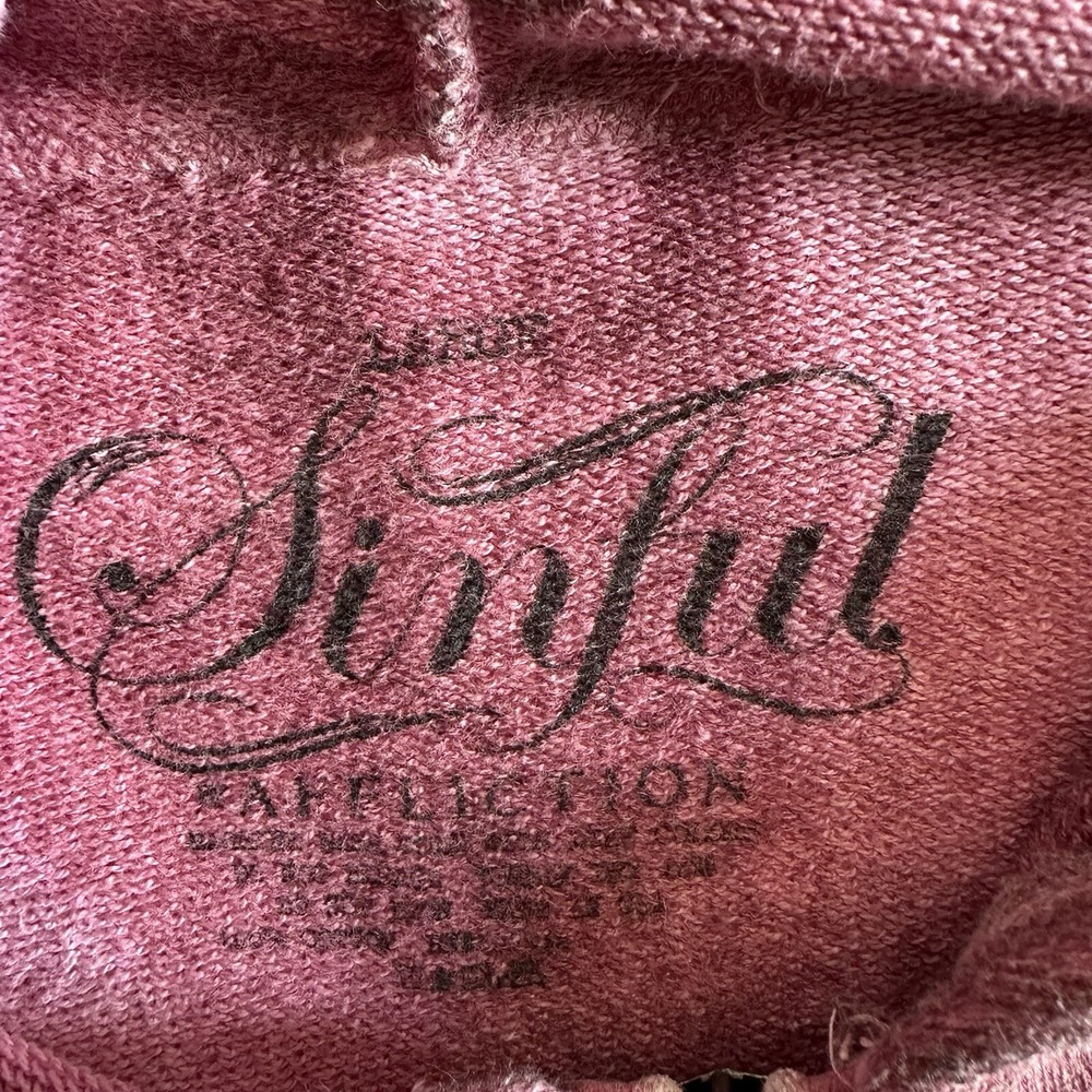 Y2K SINFUL By Affliction Pink Zip Up Jacket Women Size Large. Condition is Pre-owned. Shipped with USPS Ground Advantage.