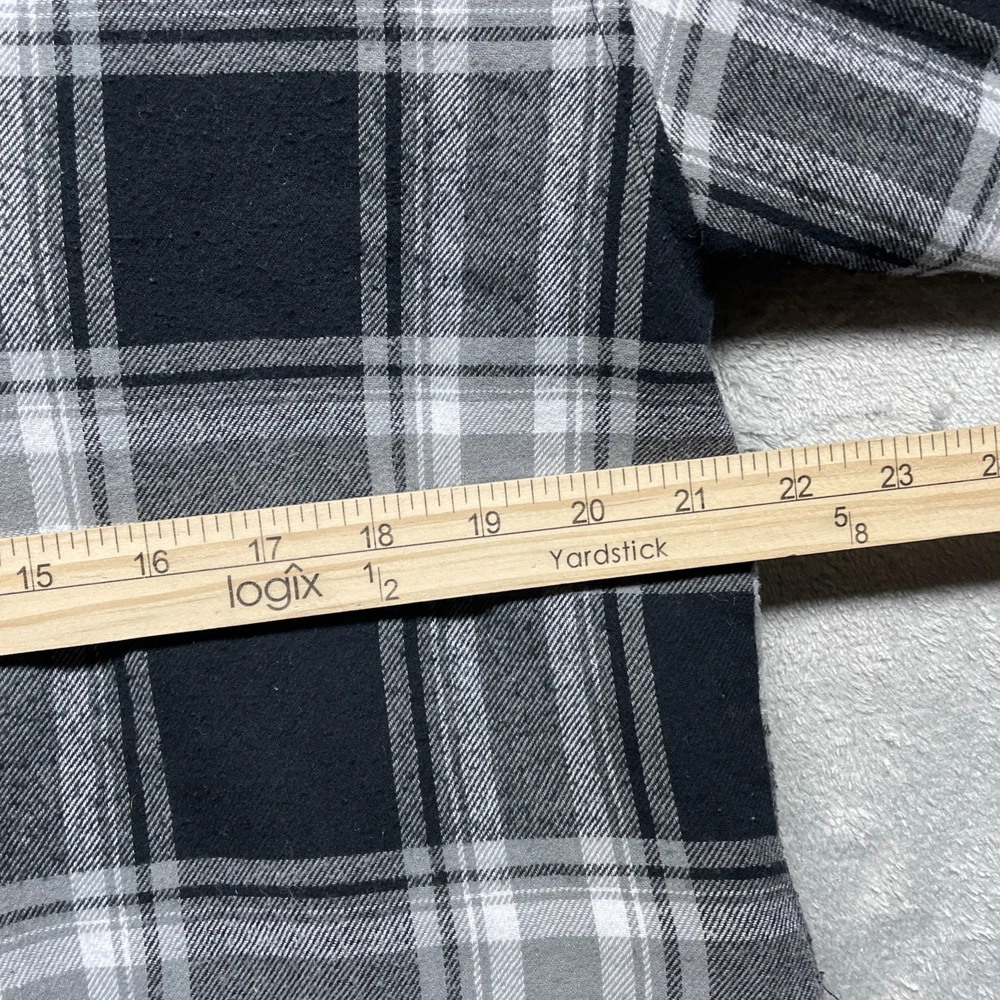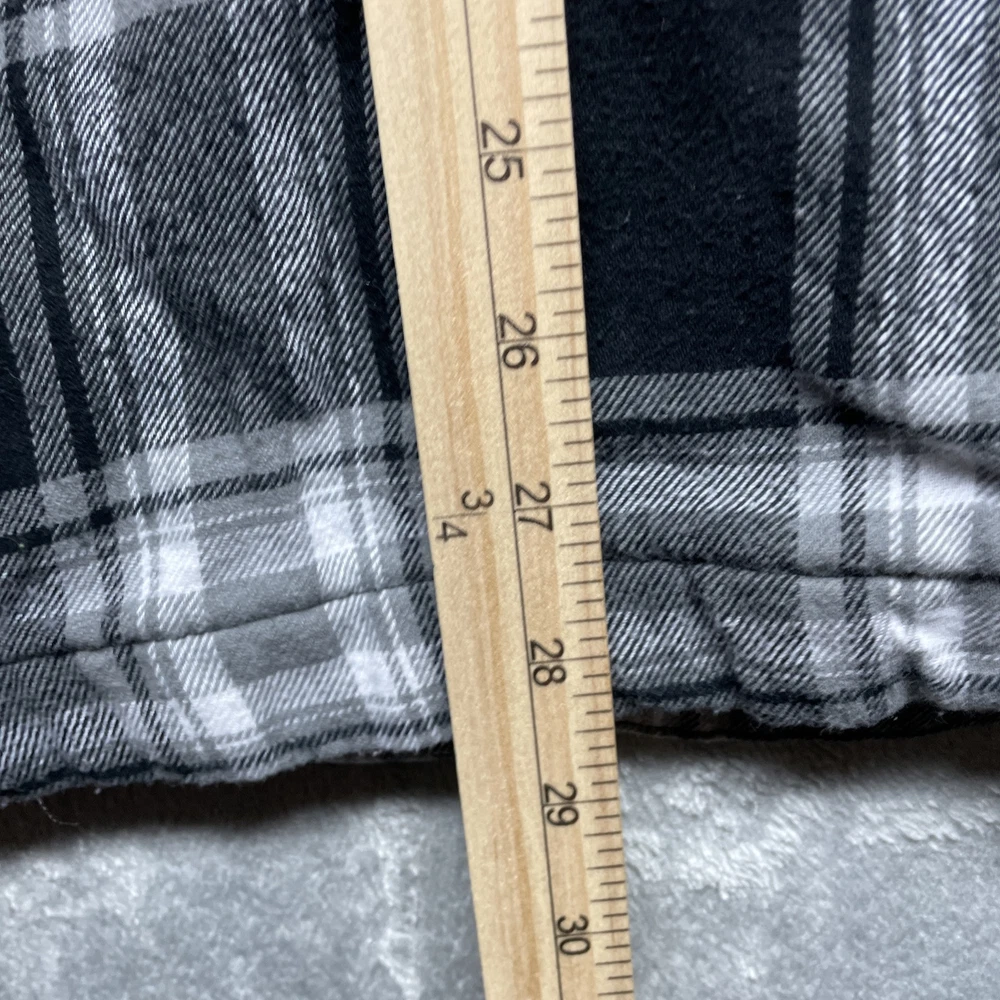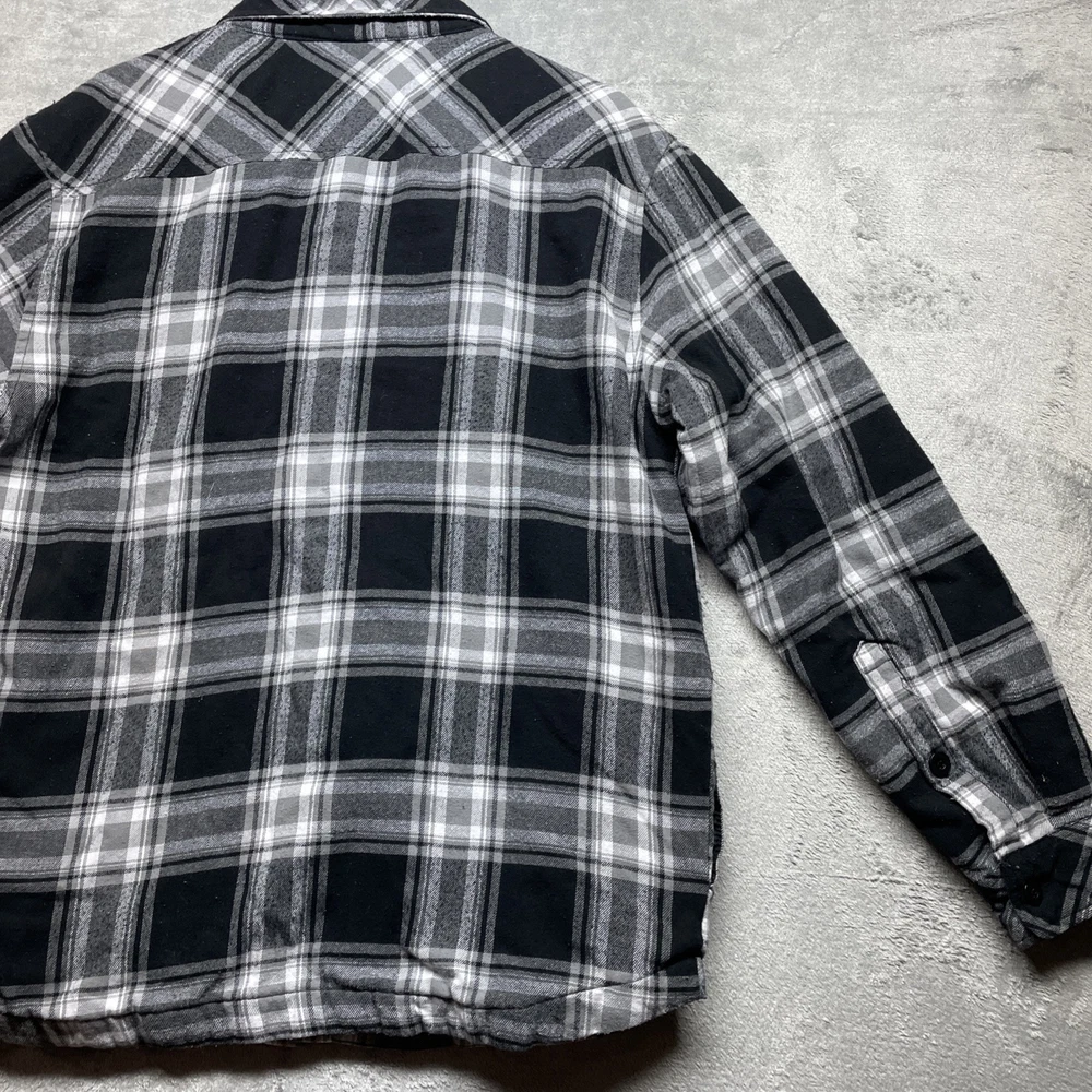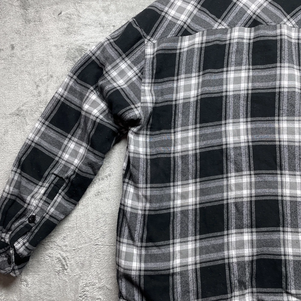 Love this Shaka-wear flannel! The black plaid is super stylish and gives off major Y2K vibes. Fits perfectly in size L, super comfy and warm. There’s a small stain (shown in pics), but it’s barely noticeable and totally worth it for the price. Great quality and looks even better in person—highly recommend!