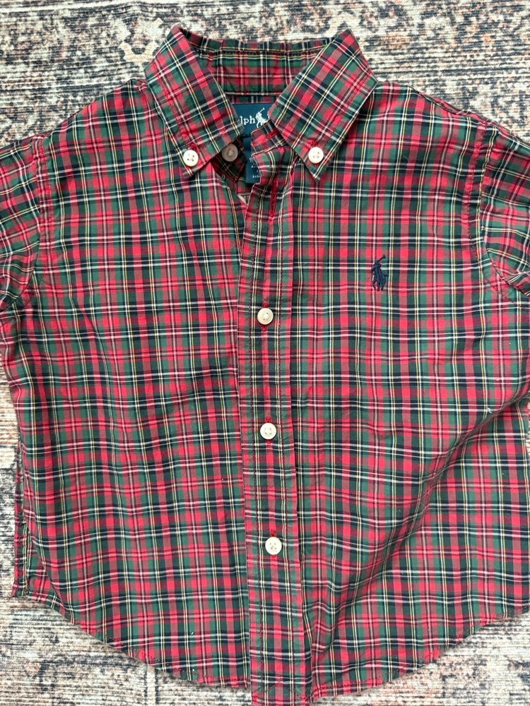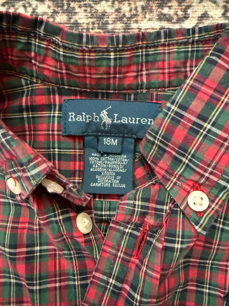 18m Ralph Lauren plaid button down 18m Koala kids plaid button down 24m Wrangler plaid (fits like an 18m) 2t Cherokee brown cargo style pants All in great condition.