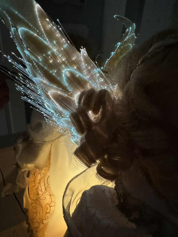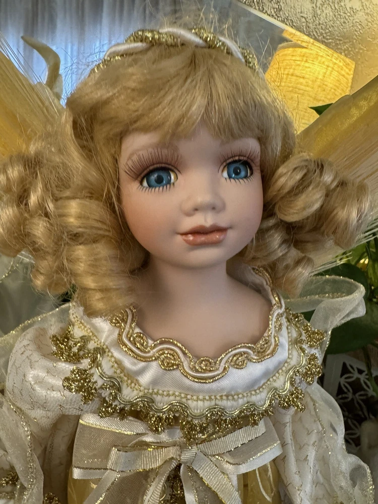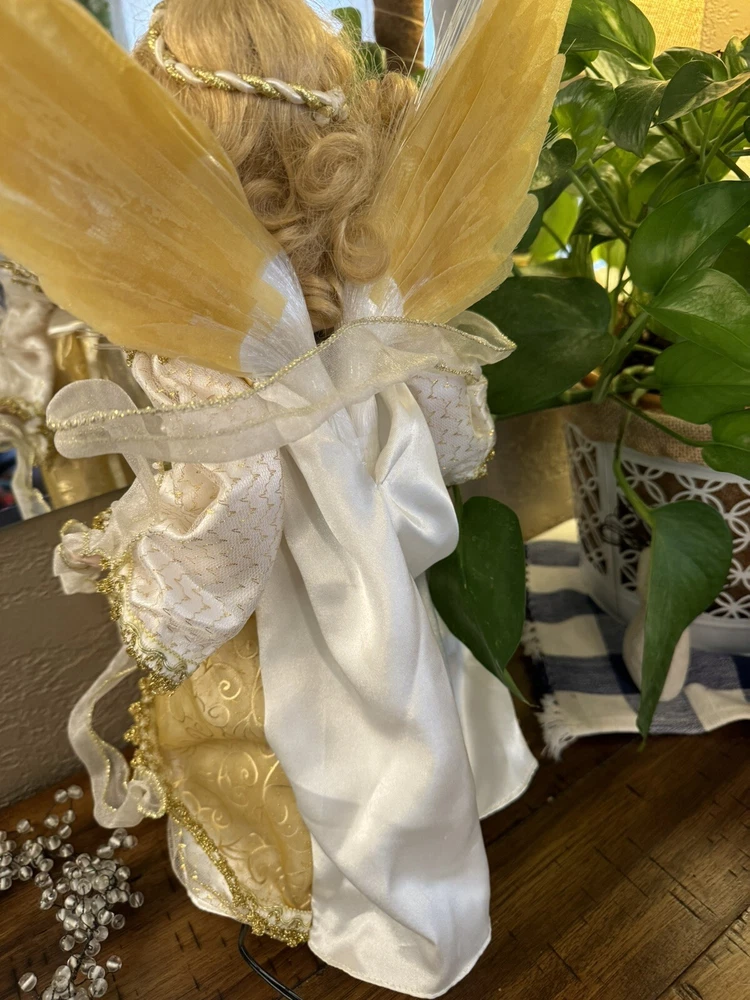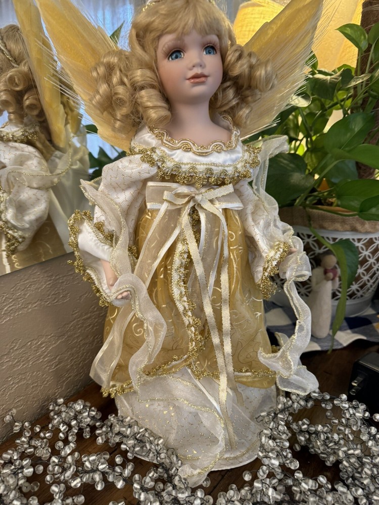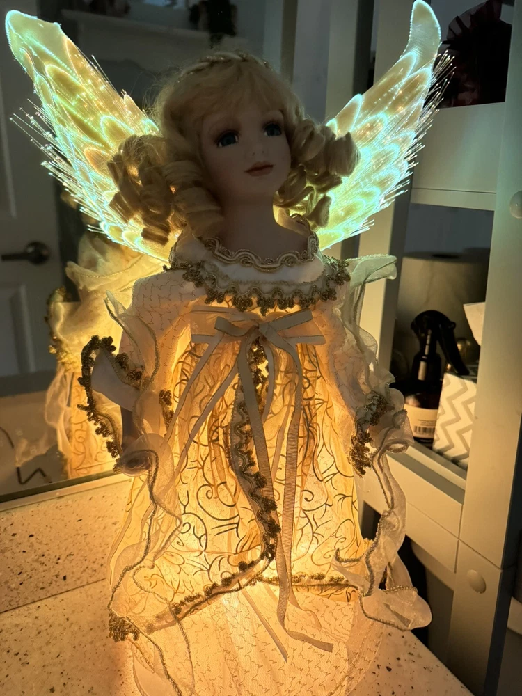 Darling Grandma-Owned Angel....in excellent condition Fiber Optics change color and she gently moves ..even her head....very pretty Add a touch of elegance to your Christmas decor with this Y2K Christmas Fiber Optic Moving Motion Porcelain Angel figurine. The medium-sized figurine stands at 16 inches tall and features a beautiful white and gold gown and lace trimmings... Adult owned COLLECTION Shipped in protective sturdy box EXCELLENT condition Happy to combine for real shipping savings Smoke Free Home Please see all Photos