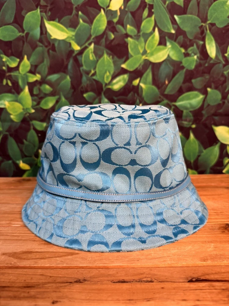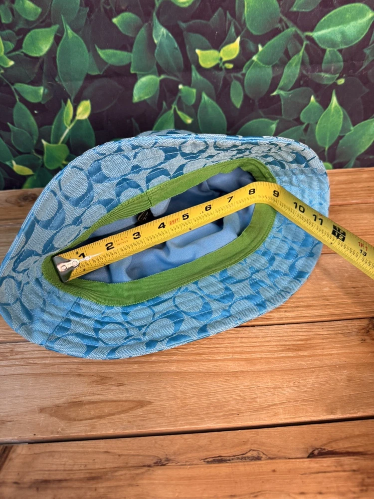 Y2K Coach BRIGHT BLUE Signature Monogram Bucket Hat Leather Trim. Condition is Pre-owned. Shipped with USPS Ground Advantage.