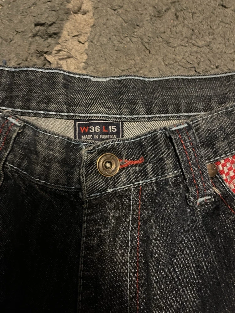 Y2K Colorful Stitched Baggy Jean Shorts W36 L15 Jorts Wide Leg Skate COOGI. Condition is Pre-owned. Shipped with USPS Ground Advantage.