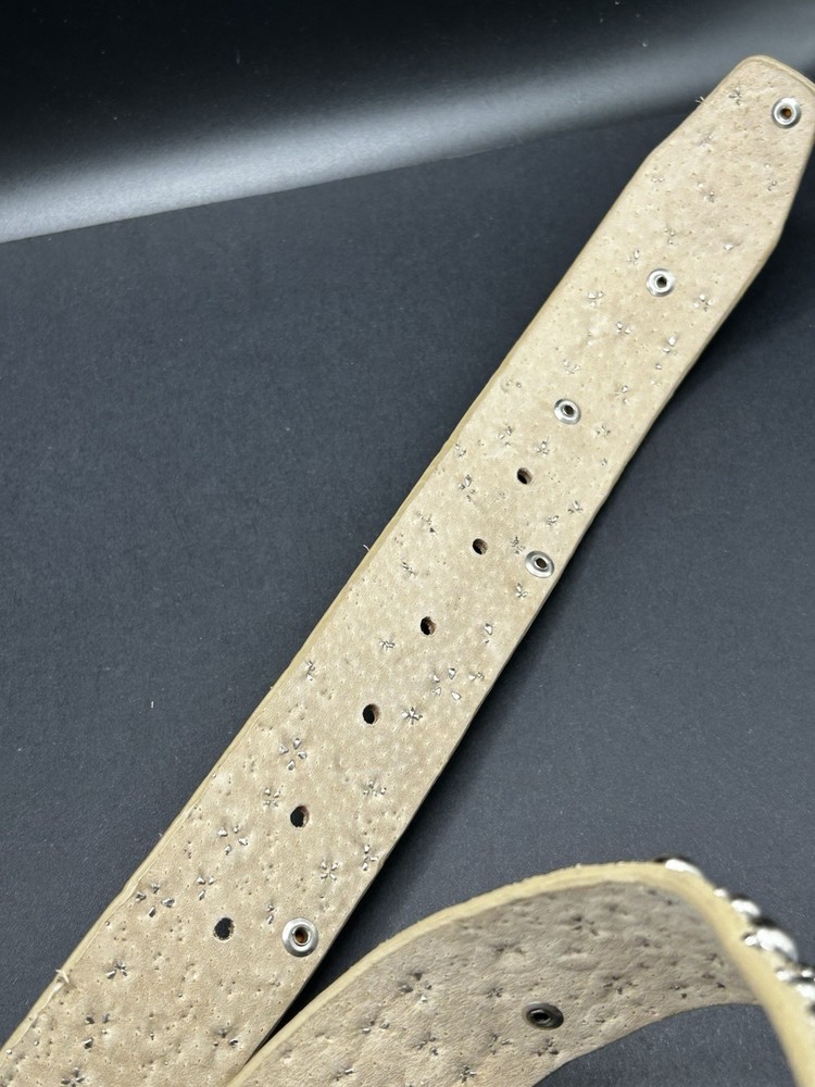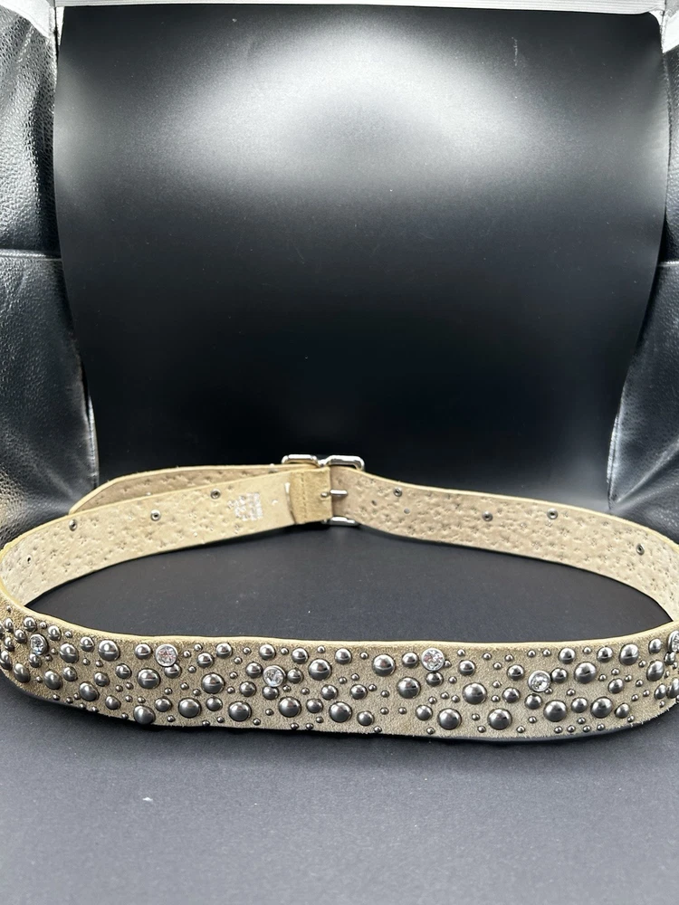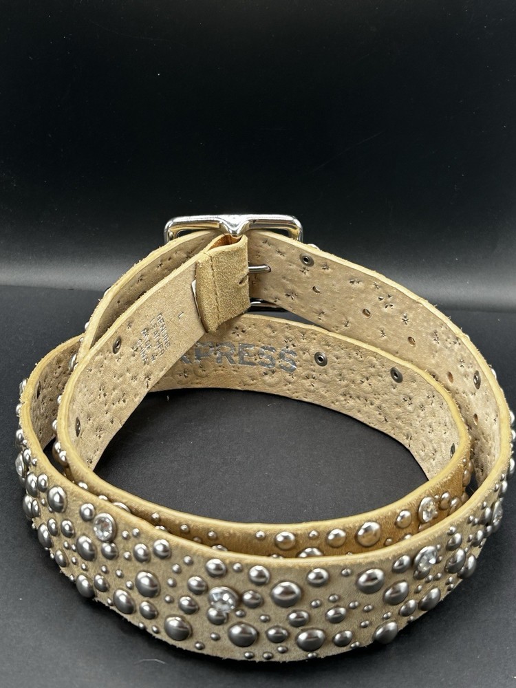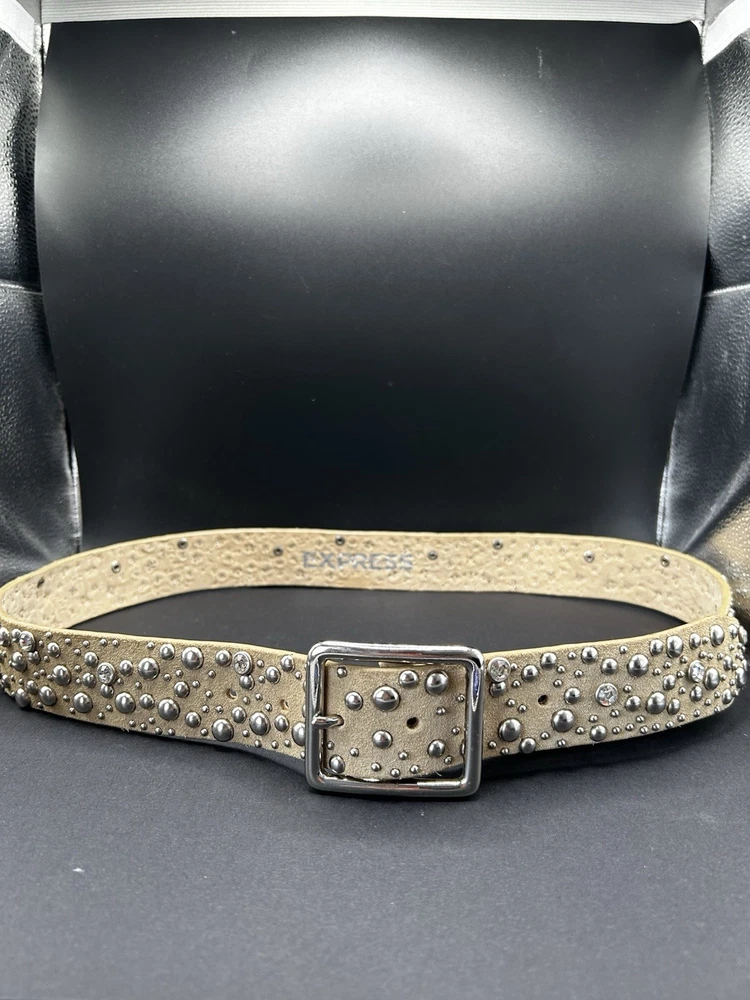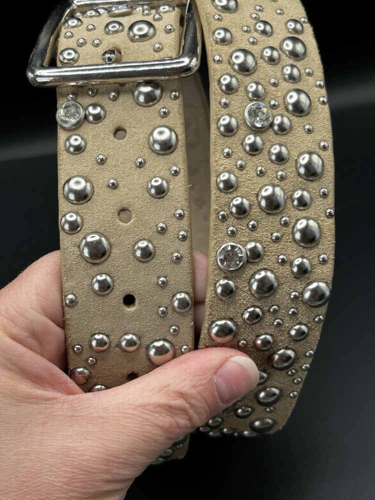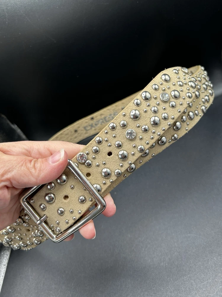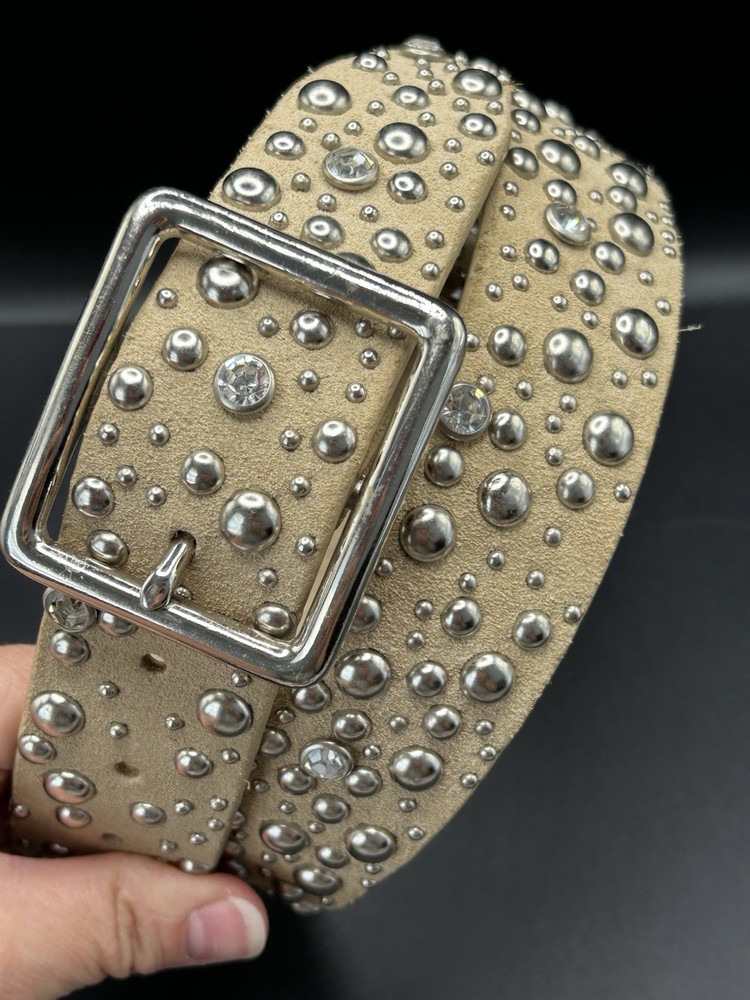 Y2K Express Silver Studded Cream Suede Belt Large 45.5” Western Rodeo