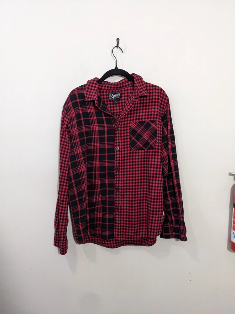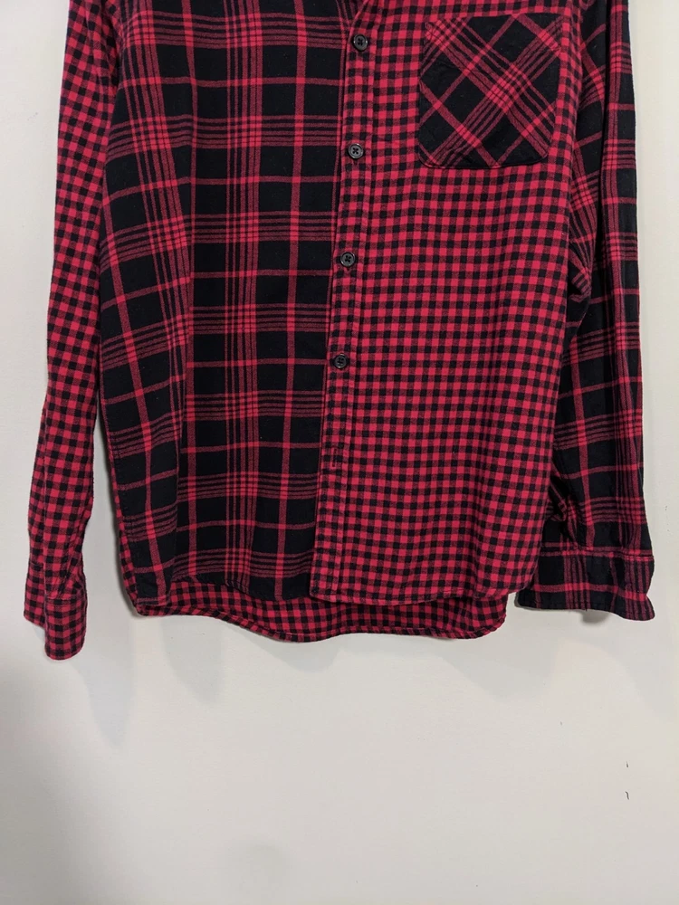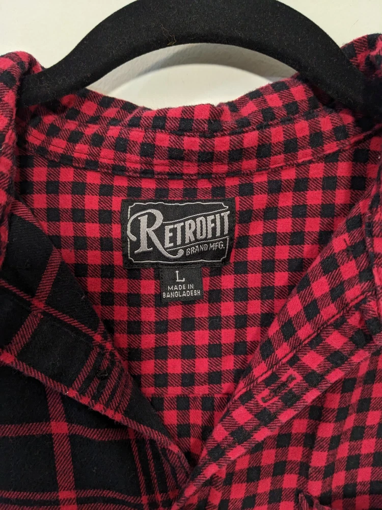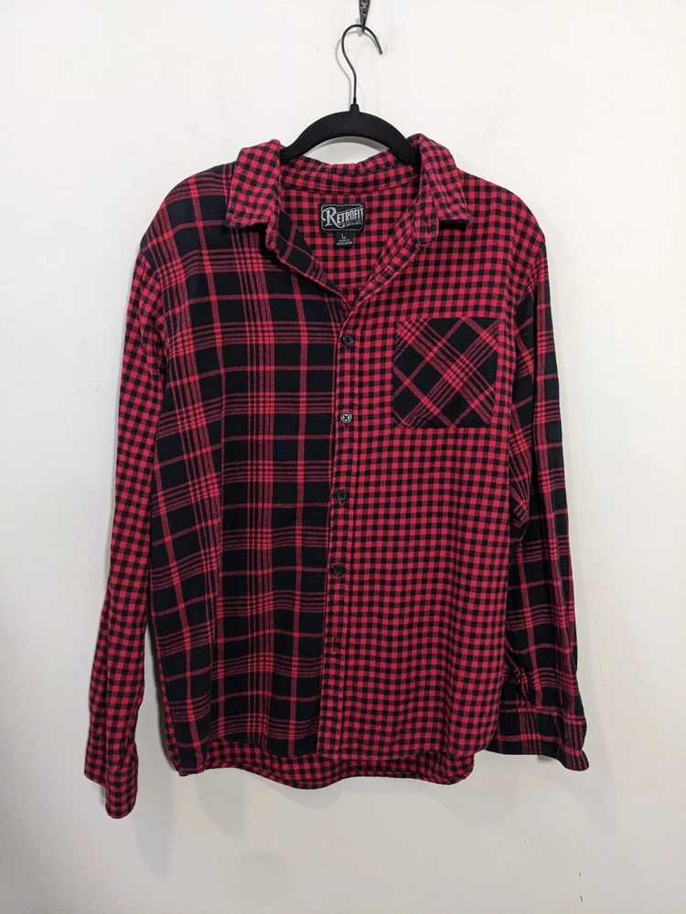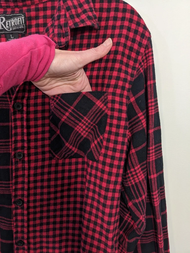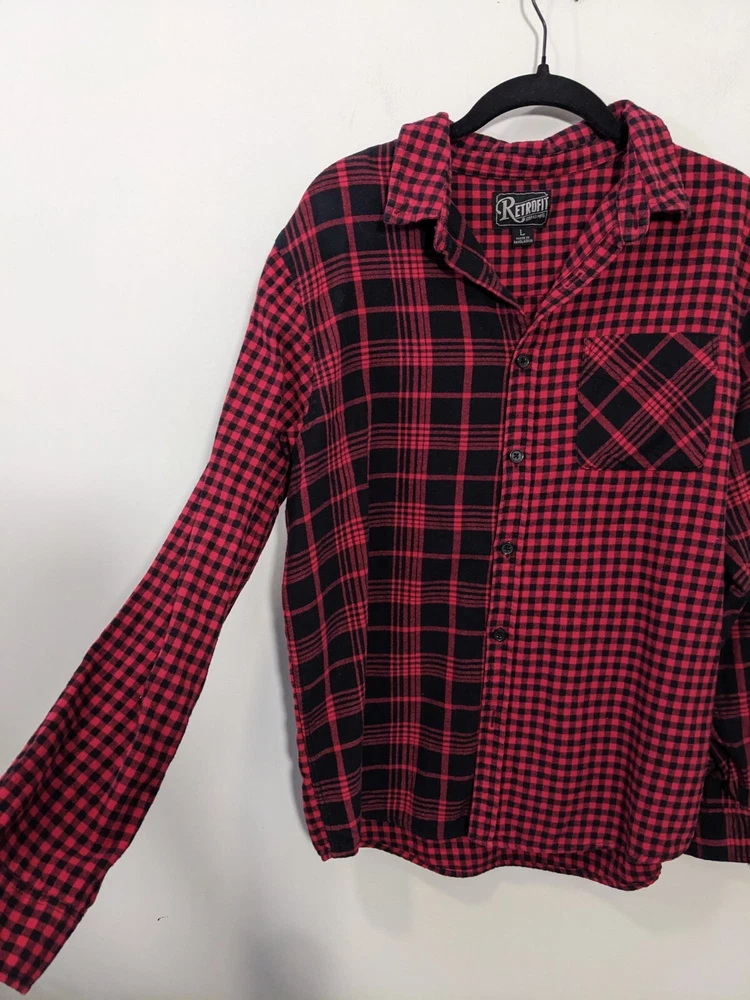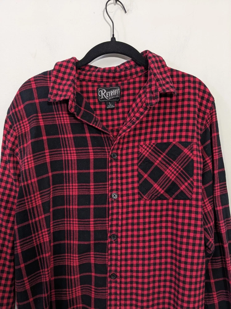 Y2K Flannel top Vintage Y2K grunge indie streetwear red black 100% cotton flannel button up long sleeve large shirt Tagged: Mens large Pit to pit: 22" Length: 27" E2 Condition: excellent vintage condition Made by: Retrofit Fit: boxy Fabric: 100% cotton Stretch: no Weight: medium Closure: button up Pockets: no