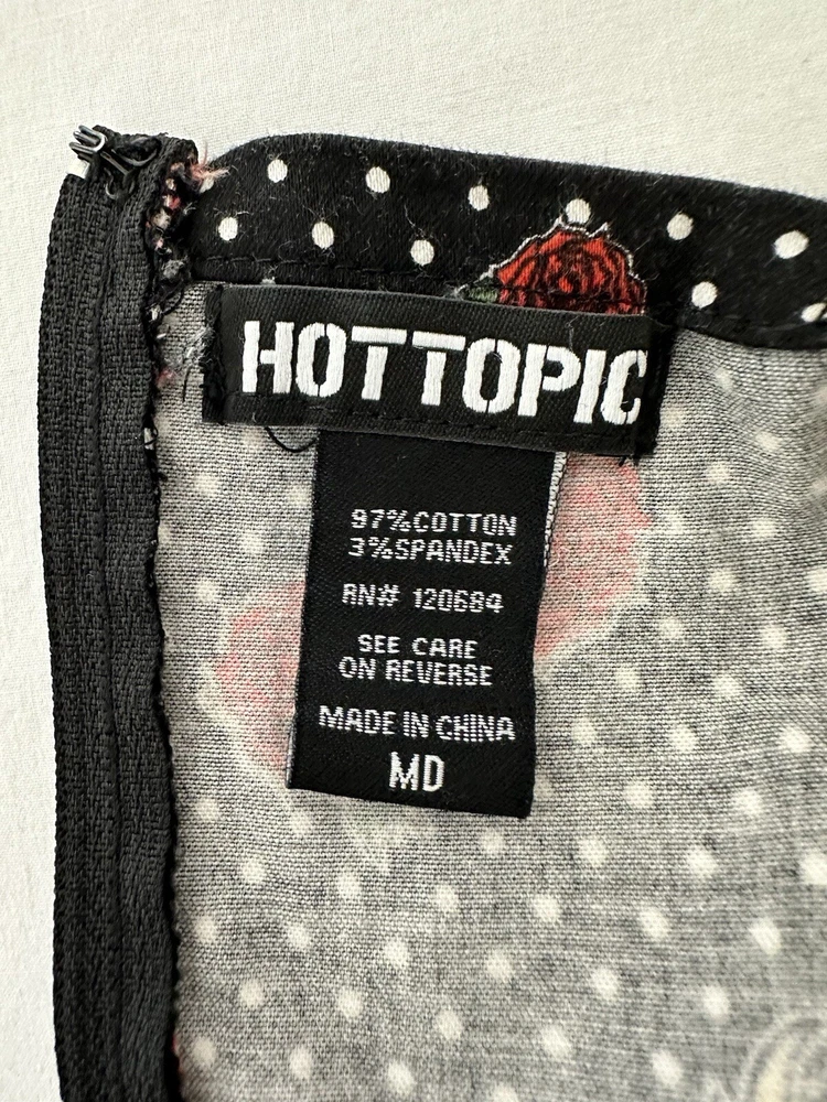 Y2K Hot Topic Red and Black Skulls Roses Swing Dress Goth Pin Up Size Medium Good Condition. SEE PICTURES & MEASUREMENTS