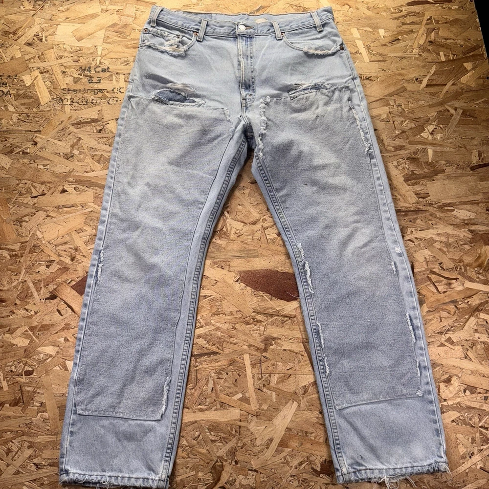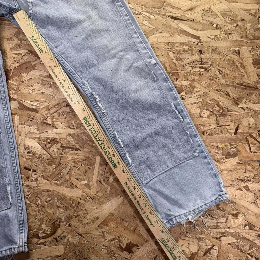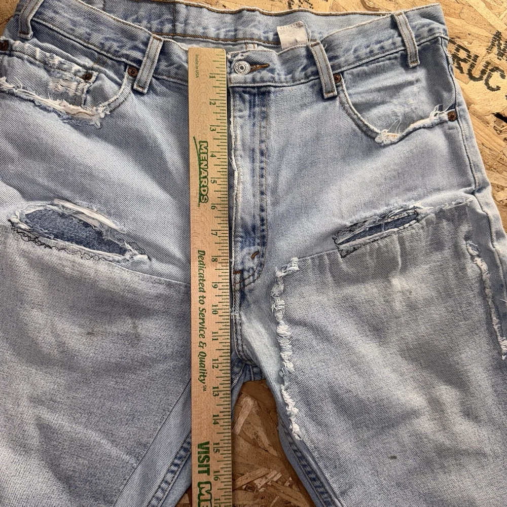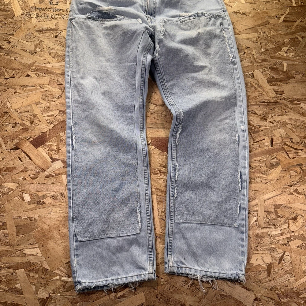 Thrashed with double knee patches. Various areas are perfectly distressed. See pics for all measurements
