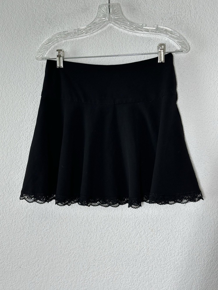 Y2K Rave Black Mini Skirt Lace Hem Goth Grunge Cyber Punk Emo Rave Sz 5 28 X 16 Very Good Condition