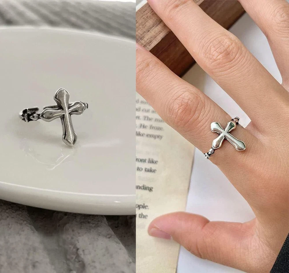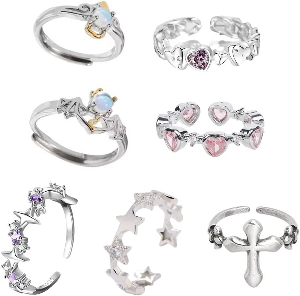 Y2K Rings Set for Women & Men | Adjustable Heart, Star, Cross & Angel Rings