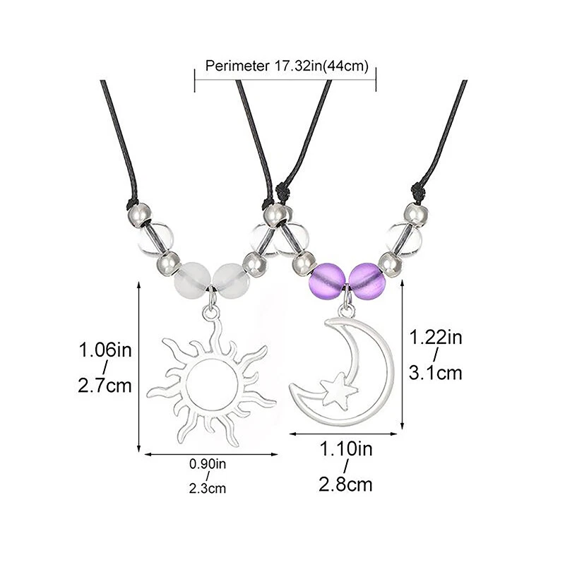 New and high quality! Description: 1. Unique Design: The Sun Moon Couple Necklace has a special design, with a pair of necklaces representing the sun and moon respectively, symbolizing the sunshine of the day and the moonlight of the night, expressing eternal love and a complementary pair. Its unique design style can attract a large number of couples to purchase. 2. High quality materials: This necklace is made of high-quality materials, which have characteristics such as durability, shock resistance, and sensitivity resistance, ensuring that you can wear it for a long time without feeling uncomfortable. 3. Perfect Gift Selection: The Sun Moon Couple Necklace is the perfect gift for couples to express love, celebrate anniversaries, Valentine's Day, birthdays, and other special moments. Its special meaning and elegant appearance make it the preferred gift for couples. 4. Exquisite Gift: This necklace is perfect as a gift for special occasions such as birthdays, Valentine's Day, Christmas, etc. It is believed that they will feel very surprised and happy. 5. Suitable for all occasions: The design of the Sun Moon Couple Necklace is simple and elegant, which can adapt to various occasions. Whether it is for daily casual wear or formal occasions, it can make you stand out and showcase your unique personal charm. Material: alloy Craftsmanship: Handmade Color: As shown Size: Reference picture Package includes: 1 Pc Note: 1. Due to manual measurement, please allow an error of 1-3mm. 2. As different computers display different colors, thank you for your understanding, the actual product color may be slightly different from the image. On Dec 5, 2024 at 12:53:38 PST, seller added the following information: