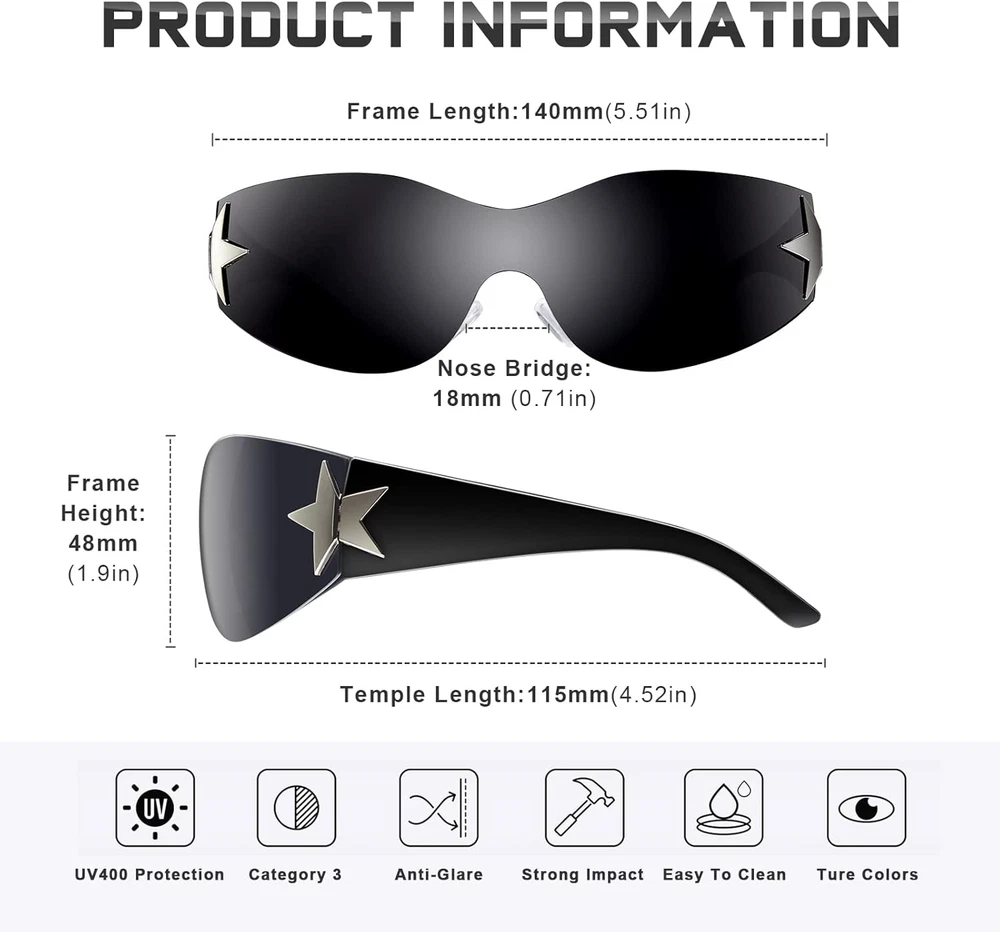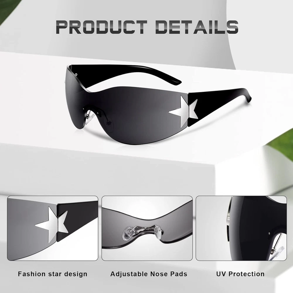 The Y2K sunglasses, a stylish fusion of retro nostalgia and futuristic charm. Crafted to perfection, these sunglasses feature oversized frames that exude confidence and sophistication. The high-quality materials used ensure durability and comfort, making them ideal for all-day wear. With UV protection lenses, your eyes are shielded from harmful sun rays, allowing you to enjoy sunny days with peace of mind.