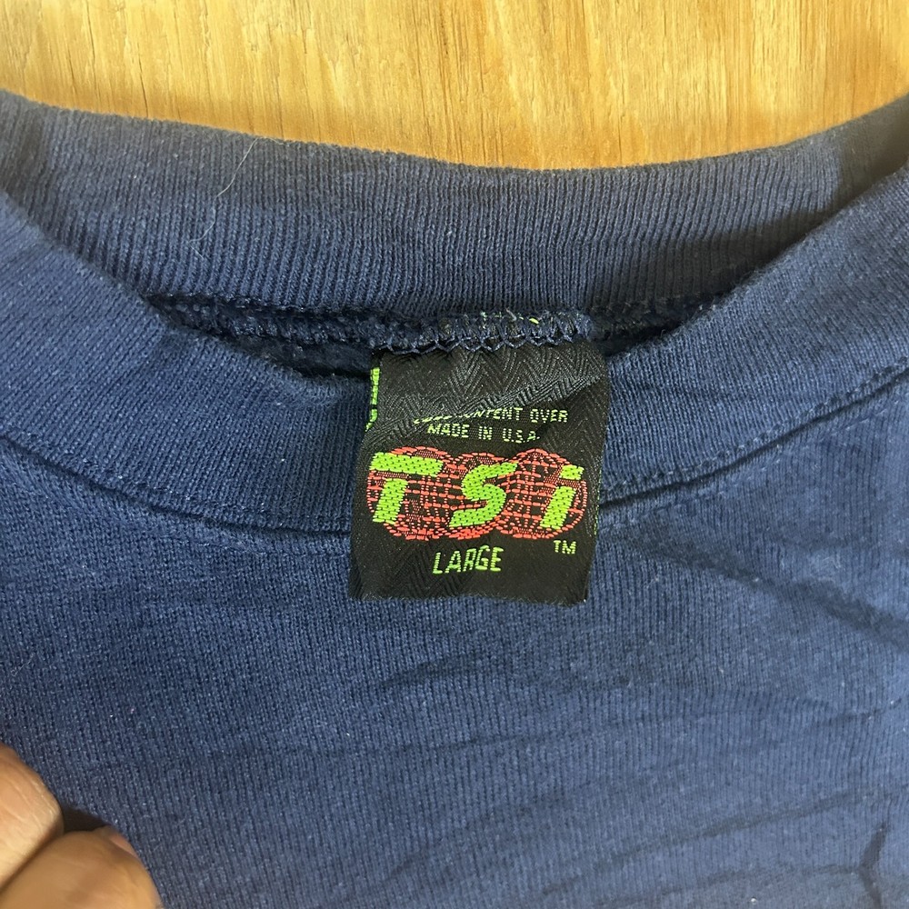 Show your support for the West Virginia Mountaineers with this rare Y2K TSi NCAA fan apparel sweatshirt. The blue sweatshirt is a size L and features the team's name and logo. It is officially licensed and perfect for wearing during the regular season. Whether you're a student or an alumnus, this sweatshirt is a great addition to your collection.