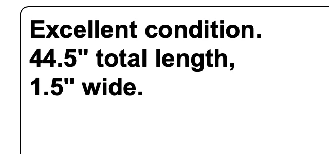 Excellent condition. 44.5" total length, 1.5" wide. THANK YOU EBAY!!! We are so thankful for our customers! We have thousands of listings, and therefore receive hundreds of messages, every single day. So, if you are asking about a price drop, or a shipping price drop, or asking for extra measurements, or to add additional photos, please allow me to answer you here, No thanks. If your question is not one of those questions, we will be happy to answer you individually. YES...WE DO COMBINE DOMESTIC SHIPPING. Extra jewelry items ship for $2 each (except for large jewelry lots). We will refund the difference as we are mailing out.....we hope you enjoy shopping with us! We encourage you to read the description and check all photos.