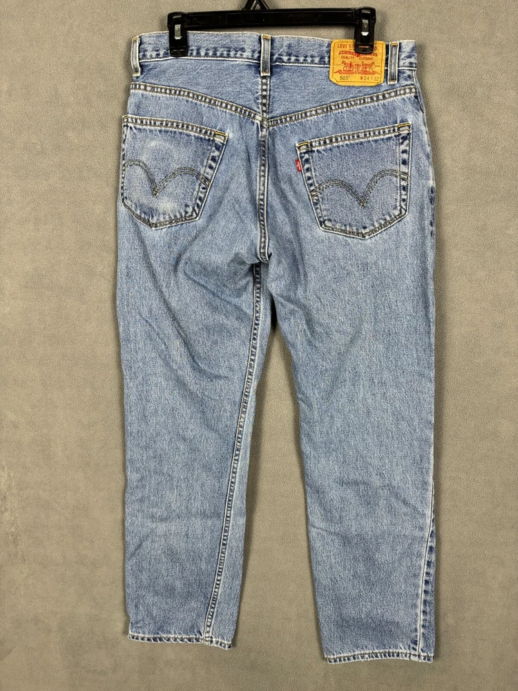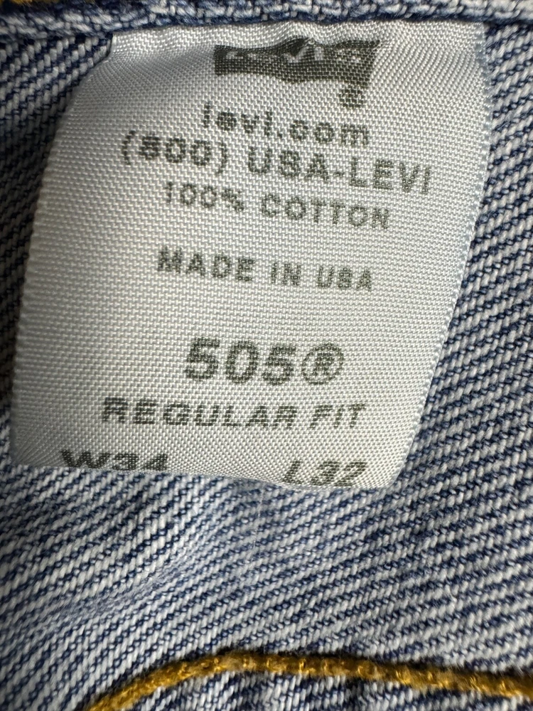 Theme:USAFabric Type:DenimSeller Notes:“In good condition, Normal signs of wear,See photos!”Department:MenType:JeansModel:Levi's 505Brand:Levi'sVintage:YesProduct Line:505Color:BlueWaist Size:34 inCountry/Region of Manufacture:United StatesSize:34Fabric Wash:MediumSize Type:RegularInseam:31 inStyle:Straight