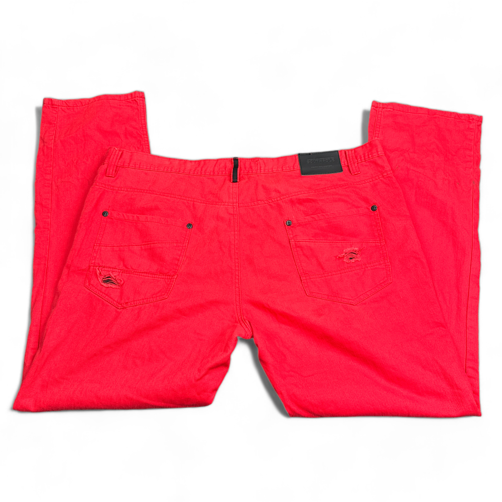 Love these Y2K jeans! The bold red distressed look is so nostalgic and stylish—perfect for a hip-hop or streetwear vibe. They’re super comfortable with that baggy fit, and the cotton blend feels durable. Minor wear just adds to the vintage charm. Shipping was fast, and the seller provided clear photos to check condition. Great quality for the price!