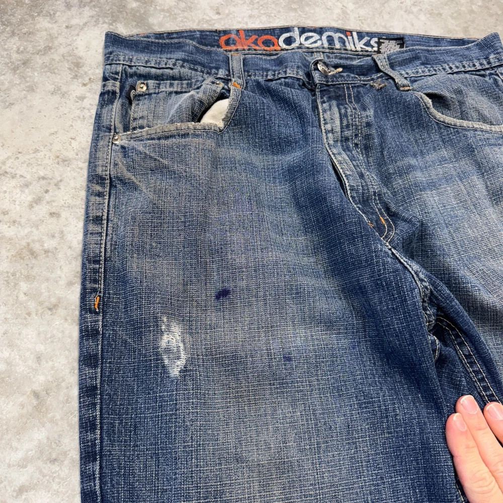 Y2K baggy AKADEMIKS mens 36x32 wide leg jeans embroidered denim hip hop skate Please check the measurements in the photos in order to gurantee correct fit of the clothing item! the measurements tend to be located at the end of the set of photos! thanks! Our customers are always our first priority here at MJTvintage! if you ever have any concerns please contact us we typically respond very promptly! if there is for any reason your not happy with a purchase don't leave a bad review just contact us and we will be happy to accomodate any issues you had, we believe in going the extra mile for our customers!! lastly, you are always the top priority as the customer and we thank you for your support! Contact us We can be contacted at any time through eBay messages if you have any questions, comments or product requests. We will respond to you within 24 hours and do our best to help you out! We encourage our customers to contact us with any questions or concerns! We'd like to be sure you are completely satisfied with your purchase. Returns For our Buyers Convienience we offer free returns! we do though stringly discourage returns for the item not fitting as we include detailed measurements in our listings so please try to be respectful of that, thanks! Shipping All packages are shipped next day 100% of the time except if purchased on the weekend they go out on monday morning! we pride ourselves on our fast shipping and hold true to it always! Disclaimer most of the items we sell are vintage (20 years & older), therefore some of them might have minor flaws that are caught in the pictures but we try our hardest to describe and picture any flaws! Free eBay listing template designed by © dewiso.com .