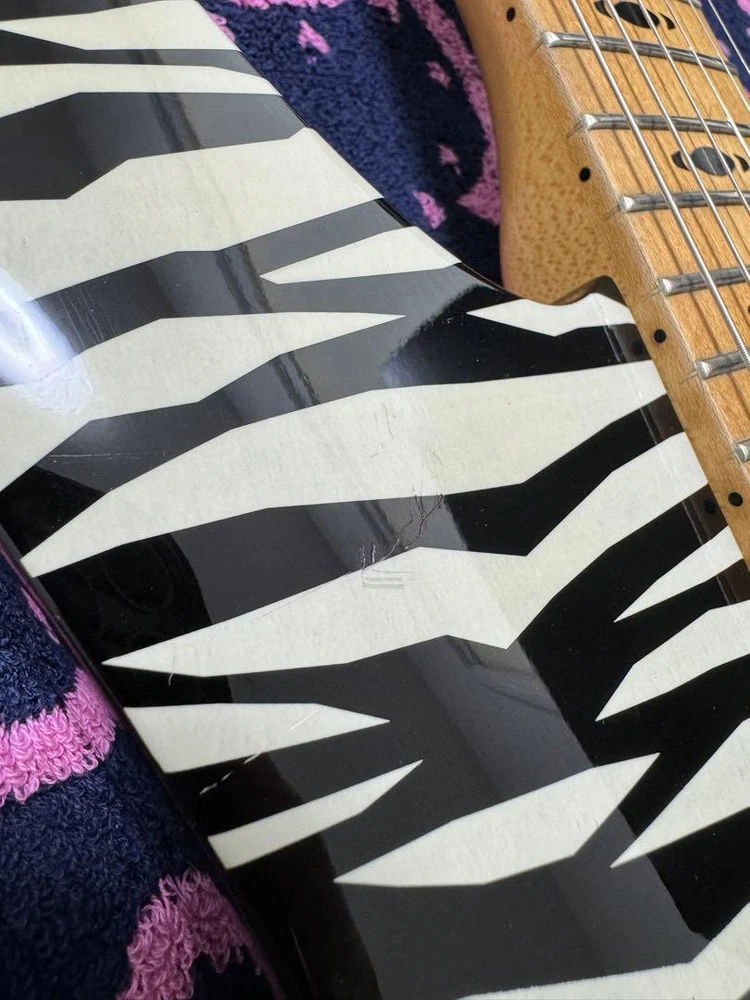 【Notice】 ※You cannot cancel an order after it has been placed and before it has been shiped. (Recently, there have been many cancellations after ordering.Please coisider carefully before purchasing.) 【Item Description】 YAMAHA MG-MⅢ ZEBRA FINISH This is a listing for a 1993 YAMAHA MG-MⅢ ZEBRA FINISH B'z Tak Matsumoto model. The strings have been replaced with Elixir OPTIWEB 09-42, and the octave adjustment, which is a hassle with Floyd Rose-type tremolos, has been done, so you can start playing right away. 【Body Specifications】 - Zebra finish - YAMAHA original tremolo unit Rockin' Magic Pro-Ⅱ - Basswood body & medium scale neck - GH1/GH6 2 humbuckers - 1 Volume & 3-way selector switch 【Accessories】 Original arm bar Third-party soft case 【Condition of the Item】 Please check the photos for scratches on the body surface. There are shallow scratches and lines on the back/sides. The neck is almost straight, with a slight forward bow. The stud bolts have been replaced with GOTOH VS100N STUD BOLT THB (the original studs were used for the photo shoot. The originals are also included). The springs have been replaced with GOTOH PGE-PSP/D (the original springs were used for the photo shoot. The originals are also included). The soft case has some damage to the interior and exterior, but it does not hinder storage or carrying. Please consider it as a bonus. 【Shipping】 The item will be packed with bubble wrap, placed in a soft case, and shipped in a guitar-specific cardboard box. 【Finally】 Overall, it is in good condition, but please understand that it is a vintage item that has aged, so please purchase it with this in mind. 【Shipping】 Fedex priory (Free shipping, of course) ※Currently, economy service is not available. ※An additional shipping fee of 150 USD is required only for Australia. ※For Australia, we may use DHL. ※EMS is not available. 【Import Duties】 Import duties, taxes and charges are not included in the item price.These charges are buyer's responsibility. Please check with customs for these addtional costs before bidding or purchasing. Even if you ask us about Import duties, we cannot give you an exact amount.