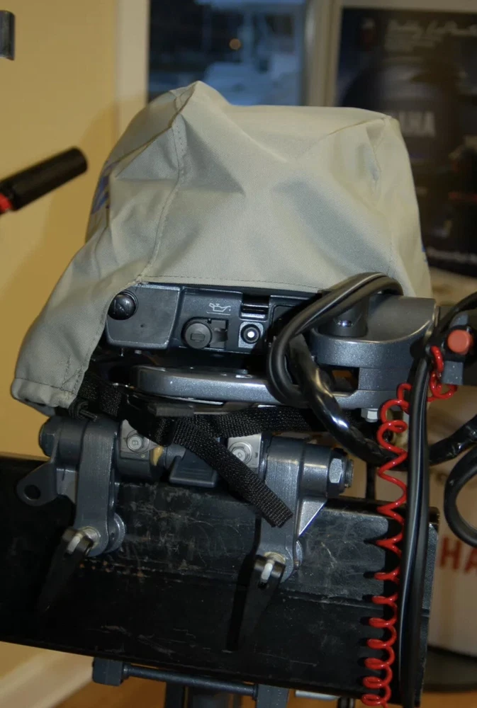 YAMAHA Genuine Parts Outboard Motor Cover Fits: Yamaha 6-25HP 2-Stroke 4-Stroke F4/ F6/ F8/ F9.9/ F15 Fits: 25 - 6 2 Stroke Outboards, F15 - F4 Outboards Genuine Yamaha protection. Durable, fade-resistant, 600-denier, solution-dyed, polyester covers are emblazoned with Yamaha graphics. These covers are for storage only and must be removed prior to starting engine. MAR-MTRCV-ER-10