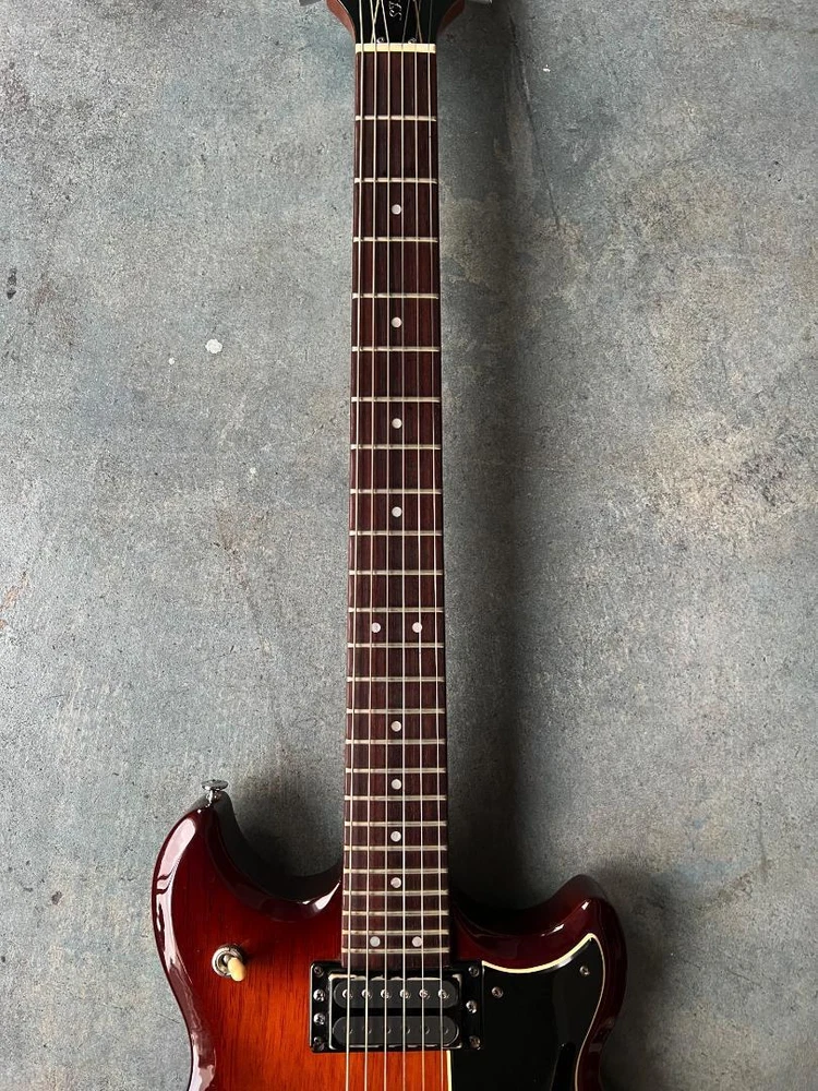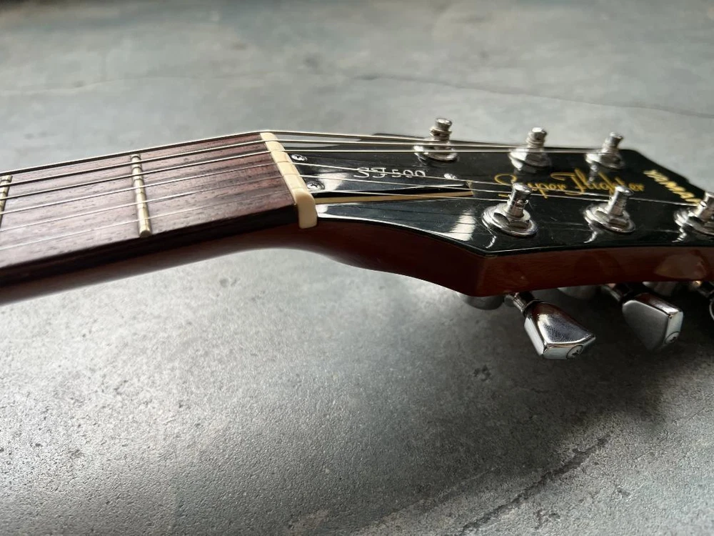 【Notice】 ※You cannot cancel an order after it has been placed and before it has been shiped. (Recently, there have been many cancellations after ordering.Please coisider carefully before purchasing.) ---------------------------------------------------------------------------------------------- 【Item Description】 Below are my personal opinions, but I think it's in very good condition for a 40-year-old vintage guitar, with no fatal damage. The neck has a slight forward bow, the truss rod has not been adjusted since I bought it, the frets are over 60% remaining, and it's in good playing condition. The sound has not been checked, but there are 4 additional switches. I have performed a simple maintenance, replacing the strings with new ones and applying Howard's orange oil to the fingerboard. Accessories include a leather soft case. This is a used item, so it is sold as is. The "YAMAHA SF-500" is a solid-body guitar that was only manufactured and sold for a short period from 1978 to 1980. While it looks similar to an SG, it has a body thickness and weight almost identical to a Les Paul, with a slightly wider and shallower double cutaway plus 24 frets. Interestingly, the design of this SF has been carried over to the Revstar series currently on sale. The SF series consists of the SF1000 at the top, followed by the SF700, and then this SF500. This SF500 is the only one that uses different body and neck materials than the top two models. The SF1000 has an alder + maple body and a maple + ebony fingerboard neck, while the SF700 is the same as the SF1000 except for the rosewood fingerboard. The SF500 has a town + mahogany body and a mahogany + rosewood fingerboard neck. Body: Town + Mahogany Color: Brown Sunburst Neck: Mahogany + Rosewood Fingerboard: Rosewood (24 frets) Joint: 4P Bolt-on PU: Original humbucker x2 Weight: Approx. 4.3kg The craftsmanship is typical of Yamaha, with a resonant sound throughout the body and a very playable high position thanks to the cutaway. It also has a gold Bigsby-style tremolo arm that has been added later. * I think it would be even easier to play if you replaced it with a roller bridge. ----------------------------------------------------------------------------------------------- 【Shipping】 Fedex priory (Free shipping, of course) ※Currently, economy service is not available. ※An additional shipping fee of 150 USD is required only for Australia. ※For Australia, we may use DHL. ※EMS is not available. 【Import Duties】 Import duties, taxes and charges are not included in the item price.These charges are buyer's responsibility. Please check with customs for these addtional costs before bidding or purchasing. Even if you ask us about Import duties, we cannot give you an exact amount.