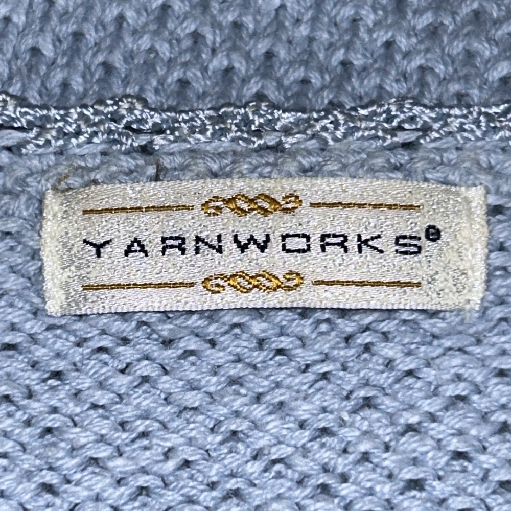 Style: Pullover Department: Women Country of Origin: China Type: Sweater Size: XL Size Type: Regular Material: Cotton Pattern: Flowers Color: Blue Sleeve Length: Short Sleeve Brand: YarnWorks