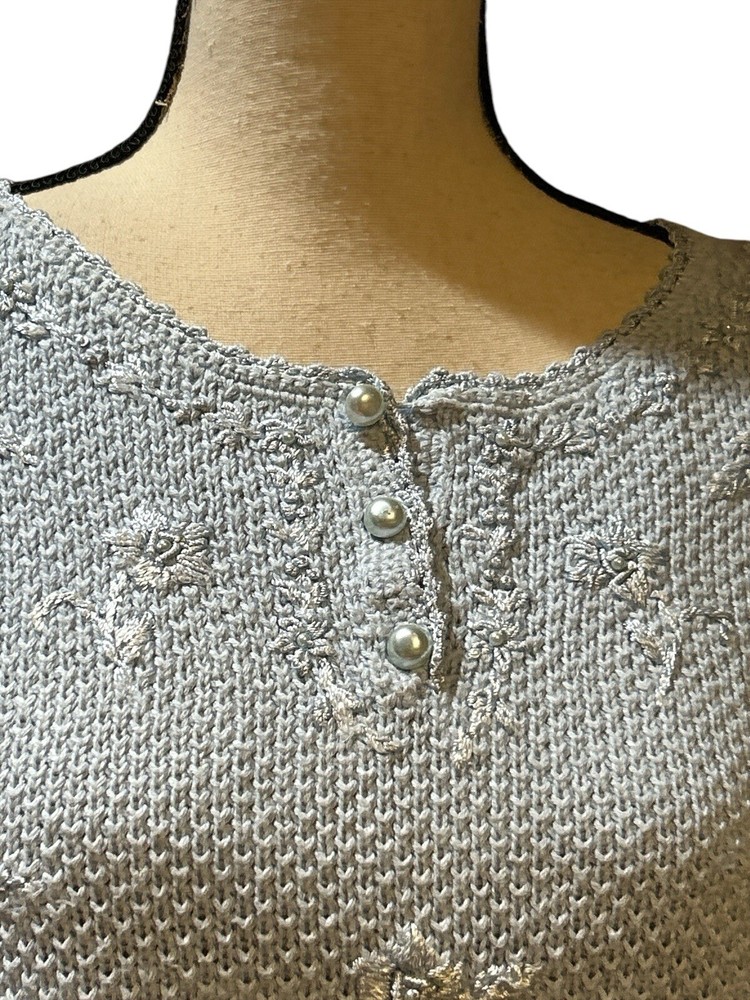 YARNWORKS Pullover Short Sleeve Sweater Faux Pearls Light Blue Sz XL