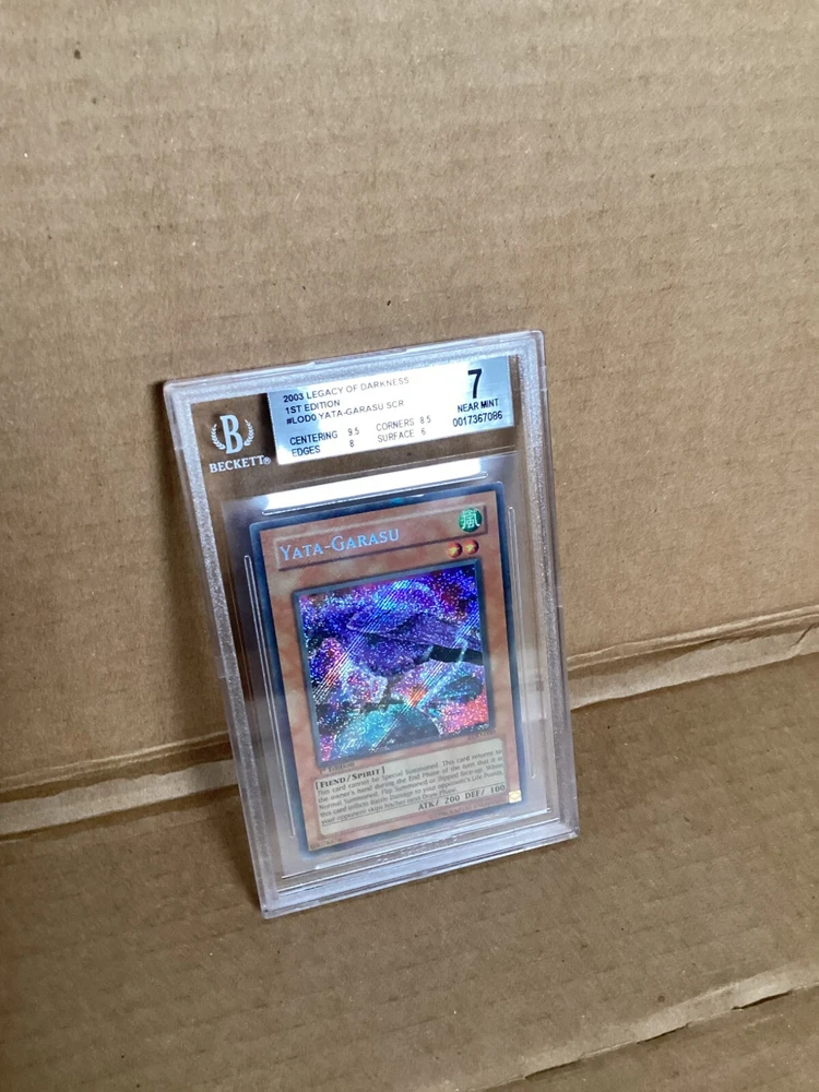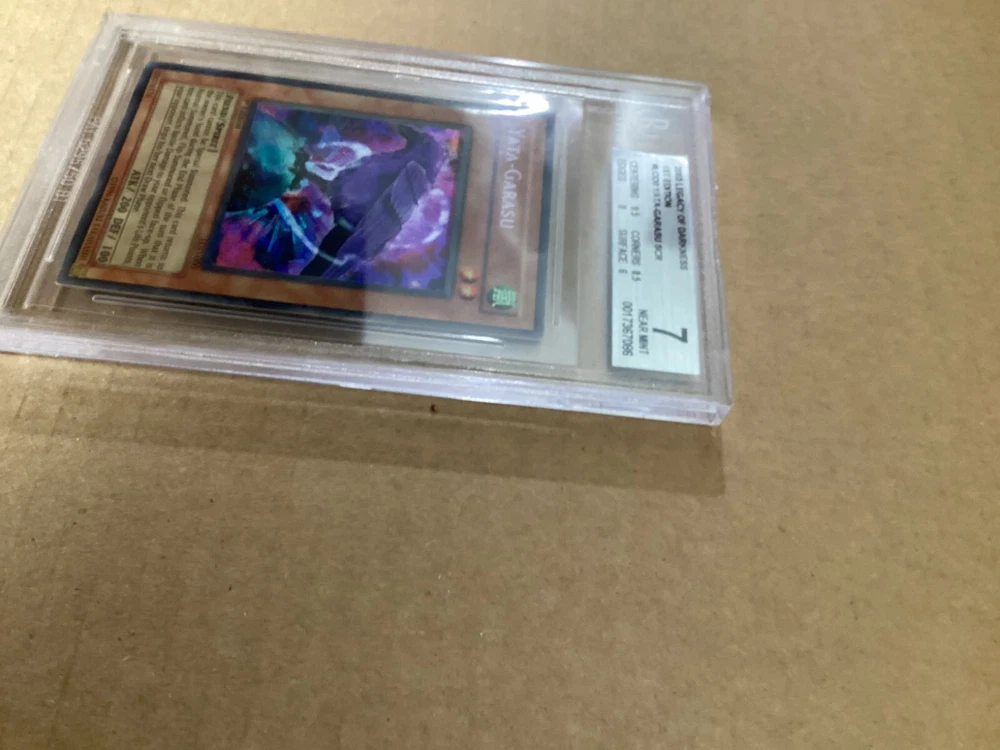 Step into the world of strategic duels with the Yata-Garasu card from the Legacy of Darkness set, a must-have for any Yu-Gi-Oh! TCG enthusiast. This card, numbered LOD-000, features the iconic imagery and intricate detail that Konami is known for, making it a standout piece in any collection. The Yata-Garasu card is a Secret Rare gem from the 2003 series, presented in English with the classic Japanese card size. It's not just a collectible but a pivotal piece for players looking to enhance their gameplay experience. Enhance your deck with this timeless card and leave an impression on the table. Gorgeous full foil bleed, a true gem for any collection. It truly sparkles from edge to edge. Centering: 9.5 Corners: 8.5 Edges: 8 Surface: 6