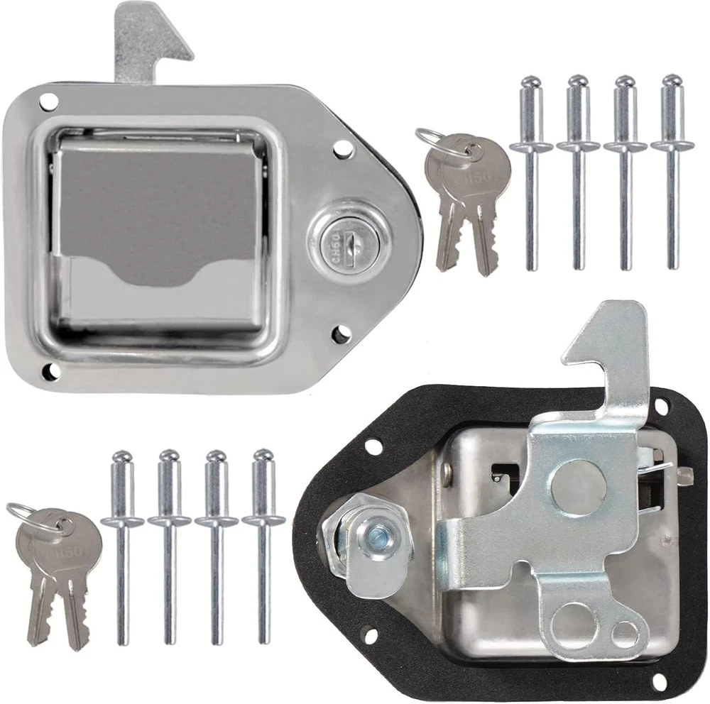 Store New Arrivals Add to Favorite View Feedback Contact YESHMA 2Pcs Truck Tool Box Latch Toolbox Paddle Lock Replacement Handle Stainless Steel with Keys & Rivets for Truck Trailer UTV ATV Toolbox Description Item model number 6d958c6d-51a2-4f57-b1bd-b0c02eedf8ad Style Modern Number of Pieces 2 Color Silver Included Components 2pcs tool box latches, 2pcs gaskets, 4pcs keys, 8 mounting rivets Brand YESHMA Material Stainless Steel, Rubber Control Method App Batteries Required? No Item Weight 1.28 pounds Size 2 Pieces Lock Type Key Lock Recommended Uses For Product Securing and accessing tool boxes in trucks, trailers, UTVs, ATVs, and electrical cabinets Batteries Included? No Special Features Waterproof Manufacturer YESHMA Special Feature Waterproof Package Dimensions 4.8 x 4.57 x 4.49 inches Controller Type Hand Control [WIDE APPLICATIONS] Truck toolbox locks replace electrical cabinets, mobile toolboxes, power distribution cabinets, control cabinets and vehicle toolbox locks. Can be mounted on caravan, truck, trailer, UTV, ATV, UWS toolbox. [High Quality] The truck toolbox lock is made of high-quality 304 stainless steel, which is waterproof and rust-proof, strong and durable to keep your items safe in transit. [Safety and sealing] The keyhole will automatically close to achieve the function of waterproof and dustproof. Features a rubber seal to keep moisture out of the toolbox, ensuring your tools stay dry and rust-free. [Easy to install and use] Equipped with blind rivets, it can be bent and fixed directly. Install and easily replace old latches in minutes. After unlocking, it can be opened by gently pulling it. [Note] Universal to replace most truck tool box locks, but please confirm size before purchasing. If there is any quality problem with the product, please contact us to solve it. Product Description YESHMA 2Pcs Truck Tool Box Latch Toolbox Paddle Lock Replacement Handle Stainless Steel with Keys & Rivets Overall size: 4.4" x 3.22". Use as Toolbox Latch: Replace electrical cabinets, mobile toolboxes, power distribution cabinets, control cabinets and vehicle toolbox locks. Package Includes: 2pcs tool box latches, 2pcs gaskets, 4pcs keys, 8 mounting rivets. Note: Please confirm size before purchasing Keys & Keyholes-Auto close Mounting rivets & Reserved Holes-Easy to install Sponge Gaskets-Keeps tools dry and rust free Handle & Deadbolt-Safe and smooth 304 Stainless Steel-Sturdy and durable Replace Toolbox Lock-Universal for the right size ABOUT US We offer the best prices around on high quality products. Our E-store includes media such as books, movies, music and games while offering electronics, toys, sporting apparel, clothing, tools, general home, garden items and more. SHIPPING We are always working hard to ensure your package arrives as soon as possible. Please understand that some factors like weather, high postal traffic, and the performance of shipping companies are outside of our control. We offer free shipping to the lower 48 states and ship within 2 business days of payment, usually sooner. We do not accept P.O. Boxes. Please provide a physical address. RETURNS We offer a 30-Day Return Policy on items which you are not completely satisfied with. You have the option for a full-refund or an exchange of the item. No returns are available on items shipped outside of the USA. PAYMENT We accept PayPal. CONTACT US This page content is yet to come Please ad us to your favorite seller and visit again later Thank You CUSTOMER SATISFACTION We try our very best to make sure every customer is completely satisfied. If there's a problem, message us! We're happy to help.